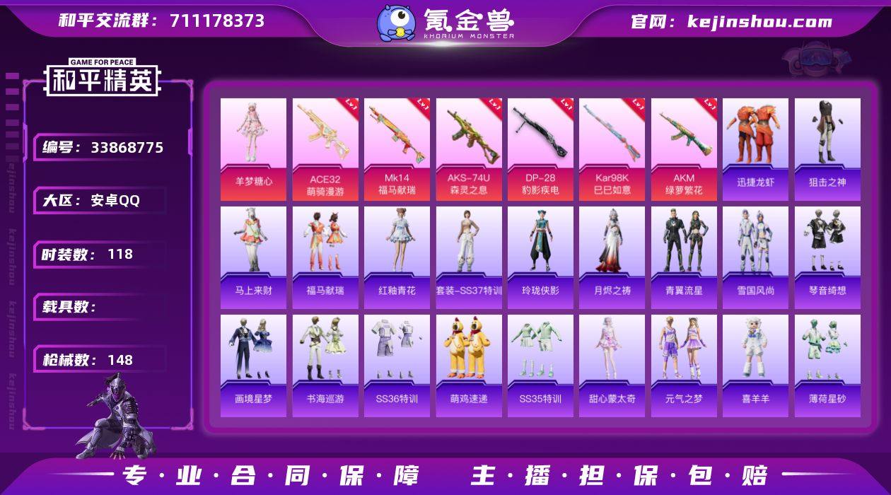 【6特效枪1粉装 秒换绑不用等】 安卓Q区-41041热力值-118套装-148枪皮 【1粉装】 角色-羊梦糖心【6特效枪】 AKS-74U-森灵之息(5级) Mk14-福马献瑞(5级) ACE32-萌骑漫游(3级) AKM-绿萝繁花(5级) Kar98K-巳巳如意(5级) DP-28-豹影疾电(5级)【172热门】 极速红龙 白色伏地魔 SS26特训 SS25特训 SS23特训 M762-天降萌叽 DBS-彩虹符号 MG3-幻世战舞者 鹰眼刺客 M416-蓝色火焰 破蛋小黄鸡 长空猛禽 特训学院 青年教官 霓虹街区 魅力单车 猎鹰 蓝色运动 橘黑制服 竞技达人朋克 黄色运动 漫步者 黄色伏地魔 红色运动 黑色伏地魔 海岛探路者 春日漫步 粉红小猪 S1897-糯团青竹 AA12-G-雨过天青 沙漠之鹰-雨过天青 野牛-果冻柠檬 平底锅-画境星梦 P90-紫矿核心 GROZA-紫矿核心 玲珑侠影 M16A4-雨过天青 顶瓜瓜 雨过天青 冰河战士 MG-36-薄荷星砂 GROZA-福马献瑞 恋语绒绒 SS34特训 朱霞炽焰 撬棍-冰晶雪宝 福马献瑞 大橘大利 SS20特训 凌霄紫焰 月烬之祷 蓝冰羽 龙魂突击队 SS29特训 SS30特训 ACE32-冰晶雪宝 擎苍青焰 青翼流星 PKM-啾咪啾咪 M16A4-冰河战士 SS31特训 SS33特训 SS32特训 巳巳如意 紫幽梦 极速光影 雪绒豹 游乐 狂鲨锋刃 SS36特训 大砍刀-像素花束 MG3-火熔核心 Famas-突...