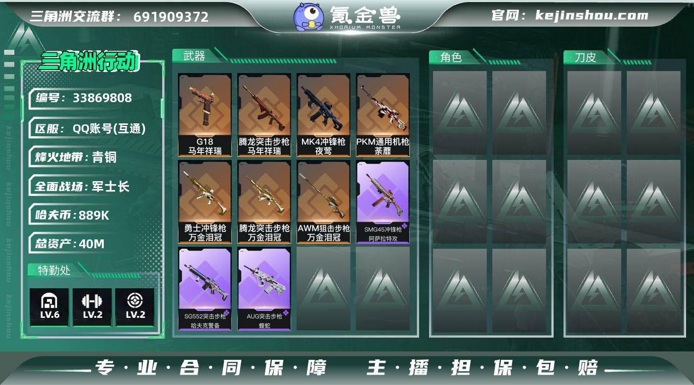 【PTSJZ4650】总资产40M/哈夫币88万/传说枪皮数7/战场等级17/行动等级31/安全箱等时效性道具以游戏内数据为准,详情请看图/近战-黑鹰/腾龙突击步枪-马年祥瑞/腾龙突击步枪-万金泪冠/勇士冲锋枪-万金泪冠/MK4冲锋枪-夜莺/PKM通用机枪-荼蘼/AWM狙击步枪-万金泪冠/G18-马年祥瑞/AUG突击步枪-蝮蛇/SG552突击步枪-哈夫克警备/SMG45冲锋枪-阿萨拉特攻/K416突击步枪-一帆风顺/SCAR-H战斗步枪-荣耀列队/K437突击步枪-生存指令/MK47突击步枪-精英联盟/MP5冲锋枪-哈夫克卫队/勇士冲锋枪-冰天雪地/M1014霰弹枪-幻影结构/M249轻机枪-冰天雪地/SKS射手步枪-弄臣/SR-25射手步枪-开拓/QSZ92G-一帆风顺/G18-星链科技/G18-哈夫克航天/SMG-45冲锋枪-斑马/M4A1突击步枪-粉色涂装/QBZ95-1突击步枪-高雅黑/QBZ95-1突击步枪-海浪/QBZ95-1突击步枪-2026/K416突击步枪-几何迷彩/K416突击步枪-高雅黑/M16A4突击步枪-高雅黑/M7战斗步枪-红色涂装/M7战斗步枪-黑巧甜心/SG552突击步枪-狂欢/G3战斗步枪-高雅黑/PTR-32突击步枪-黄蜂/CAR-15突击步枪-狂欢/MP5冲锋枪-海色/MP5冲锋枪-黄蜂/P90冲锋枪-黑巧甜心/Vector冲锋枪-几何迷彩/UZI冲锋枪-海色/UZI冲锋枪-狂欢/野牛冲锋枪-高雅黑/M1014霰弹枪-海浪/M249轻...