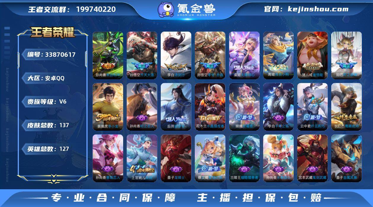 【YX2029】【齐天大圣/诗剑行/零号赤焰】137皮5传说无限倾心/末日机甲【限定皮肤】:白起狰,姜子牙天穹之誓,狄仁杰阴阳师,赵云皇家上将,妲己时之彼端,孙尚香蔷薇恋人,夏侯惇朔风刀,曹操烛龙,狄仁杰魔术师,狄仁杰万华元夜,达摩沙漠行僧,项羽海滩派对,老夫子醍醐杖,程咬金演武夺筹,兰陵王金庭之子,孙悟空零号赤焰,孙悟空齐天大圣,牛魔御旌,后羿如梦令,李元芳云中旅人,虞姬无限倾心,钟馗驱傩正仪,蔡文姬繁星吟游,鬼谷子原初探秘者,苏烈千军破阵,弈星混沌棋,沈梦溪大漠名商,明世隐疑决卦,裴擒虎李小龙,裴擒虎擒涛扼浪,狂铁御狮,米莱狄御霄,云中君纤云弄巧,盾山御銮,猪八戒猪悟能,上官婉儿梁祝,嫦娥拒霜思,桑启海盐诗旅,张良古海寻踪,刘邦剑破天穹,周瑜熔金海岸【赛季限定】:白起狰,曹操烛龙,狂铁御狮,米莱狄御霄,牛魔御旌,盾山御銮,夏侯惇朔风刀,弈星混沌棋,明世隐疑决卦,老夫子醍醐杖,鬼谷子原初探秘者,狄仁杰万华元夜,程咬金演武夺筹,钟馗驱傩正仪,苏烈千军破阵,达摩沙漠行僧,兰陵王金庭之子,沈梦溪大漠名商,李元芳云中旅人,桑启海盐诗旅,裴擒虎擒涛扼浪,张良古海寻踪,刘邦剑破天穹,姜子牙天穹之誓【战令限定...