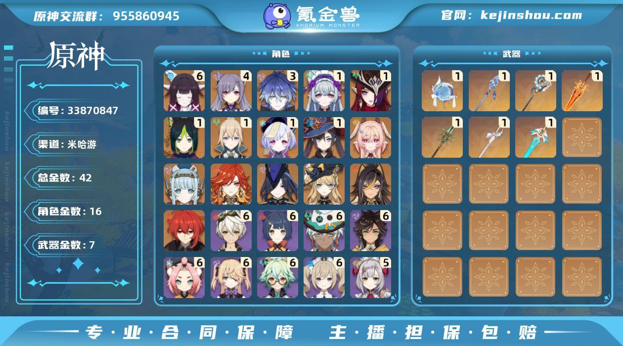 61少女,31菲林斯,01伊涅芙,顶配月感电,01火神,一命恰斯卡,全员主c大毕业练度,有图可查,轻松深渊、剧诗、危战