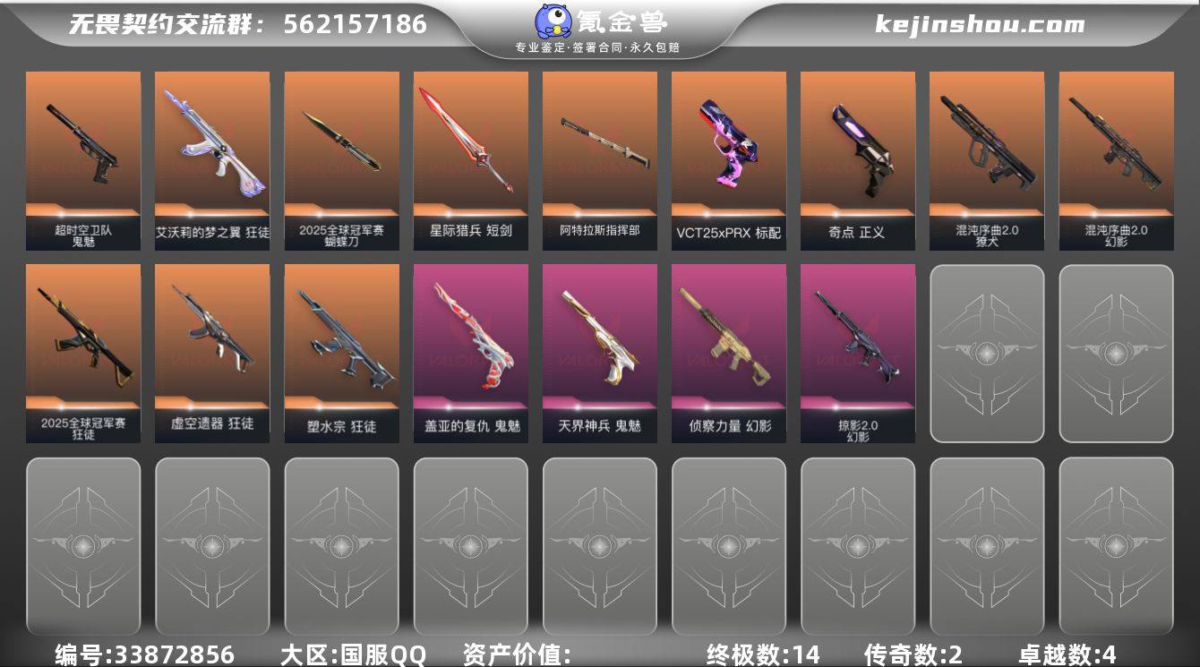 L3389 【精品号】盖亚鬼魅 天玄刀 混沌2.0幻影 混沌2.0獠犬 25冠军套 奇点正义 天界鬼魅 掠影2.0幻影 影钩 超时空鬼魅 剥皮小刀 猫猫狂徒 侦查幻影 紫金爪刀 虚空狂徒 塑水狂徒 库存: 35560剩余VP:1253剩余R点:100 段位:白银2历史最高:黄金1