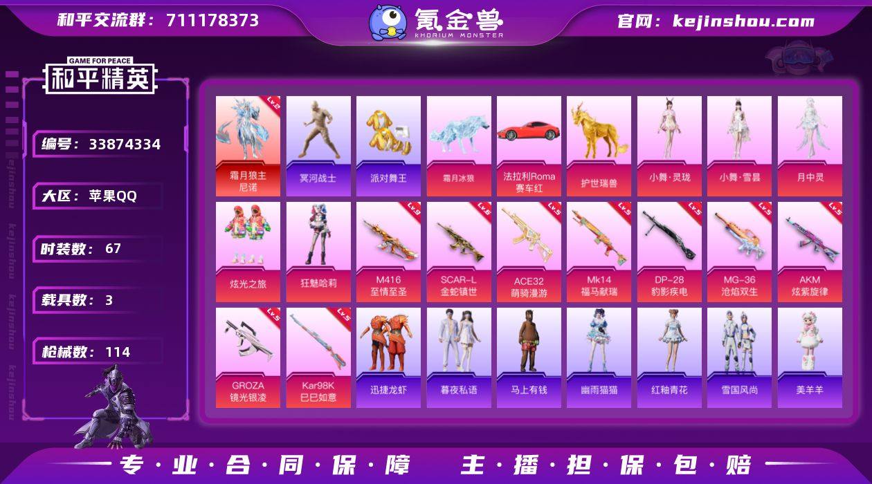 67套装1红2级尼诺5粉木乃伊女小丑派对舞王114枪皮9特效9级至情至圣6级金蛇镇世3载具金马10降落伞5飞行器