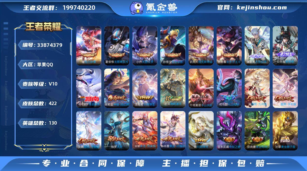 【特价出售】苹果Q-V10-至尊星耀II段位-130英雄-422皮肤-6典藏皮肤-1典藏英雄-2无双-1珍品传说-38传说-120史诗 【英雄全皮】:嬴政全皮,孙权全皮,苍全皮,蒙恬全皮,少司缘全皮 【荣耀典藏】:武则天英雄,孙悟空全息碎影,武则天倪克斯神谕,夏侯惇无限飓风号,小乔天鹅之梦,孙尚香杀手不太冷,瑶拾光映像 【无双皮肤】:诸葛亮天机白泽,公孙离离恨烟 【珍品传说】:马可波罗怪盗基德 【传说皮肤】:朵莉亚神骥鸣幻洲,王昭君长夜焕生,后羿神树通天,干将莫邪千山共赴,司马懿九山相柳,女娲愿照千秋盛,澜愿照九州拓,虞姬愿照岁时盈,云缨幻光神枪,嬴政玄雷天君,桑启鸣野蒿,吕布曦玄引,孙尚香乘龙问璇玑,孙策乘龙淬吴钩,赵云乘龙铭钟鼎,艾琳觅芳踪,铠绛天战甲,镜炽阳神光,虞姬启明星使,孙悟空零号赤焰,曜云鹰飞将,李信一念神魔,刘备时之恋人,伽罗太华,貂蝉猫影幻舞,张良黄金白羊座,干将莫邪久胜战神,虞姬云霓雀翎,达摩黄金狮子座,花木兰冠军飞将,梦奇胖达荣荣,后羿黄金射手座,貂蝉仲夏夜之梦,孙尚香末日机甲,宫本武藏地狱之眼,孙悟空地狱火,武则天海洋之心,狄仁杰超时空战士 【限定皮肤】:公孙离离恨烟,蒙犽顽岩魄,姜子牙天穹之誓,...