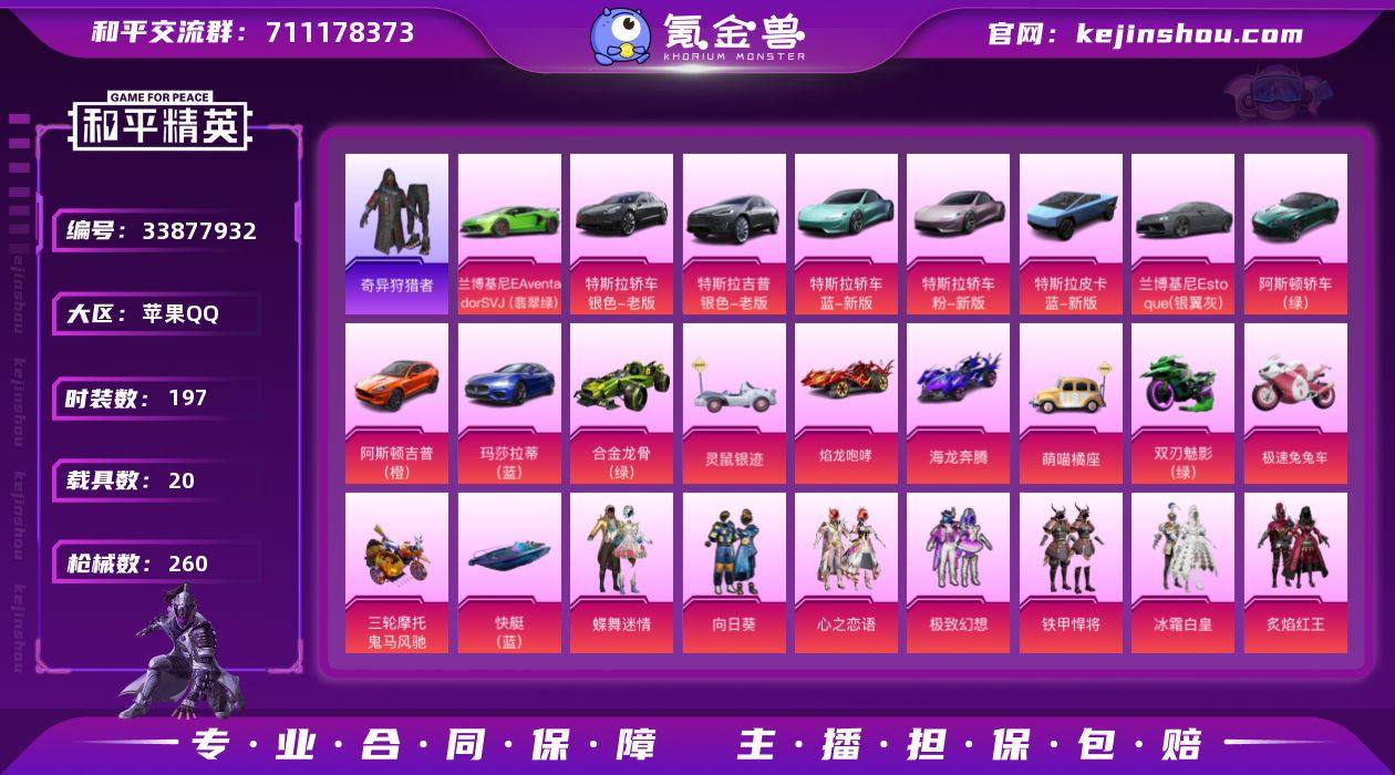 【LHPX2594】【特价出售/店主推荐--两把七级枪】苹果 手Q-19粉装-13特效枪-20载具-6粉色飞行器-118536热力值-13王牌印记-197套装-260枪皮【热门品类】:套装-奇异狩猎者,套装-黄金大亨,套装-忍者信条,套装-龟仙人【粉色套装】:粉装-蝶舞迷情,粉装-向日葵,粉装-心之恋语,粉装-极致幻想,粉装-铁甲悍将,粉装-冰霜白皇,粉装-炙焰红王,粉装-星之彼岸,粉装-铁血龙王,粉装-暗夜玫瑰,角色-赛罗闪耀型,粉装-林间仙鹿,粉装-彩虹鹿灵,粉装-山涧鹿灵,粉装-黄伞悠悠,粉装-流星咚咚,粉装-精灵娃娃,粉装-酣梦娃娃,粉装-暗星紫秘【粉色枪皮等级】:M416-五爪金龙(四级),M416-心之恋语(七级),GROZA-香水柠檬(七级),M762-甜心娃娃(四级),Vector-红伞翩翩(四级),汤姆逊-怪笑疯兔(四级),Kar98K-巳巳如意(五级),M24-暗星紫秘(四级),Mini14-绚金瑰梦(二级),Mk14-福马献瑞(一级),SLR-暗夜玫瑰(三级),DP-28-豹影疾电(五级),平底锅-林间仙鹿(二级)【粉色载具】:特斯拉Model 3(冷光银),特斯拉Model X(冷光银),特斯拉Roadster(水滴蓝),特斯拉Roadster(沁心粉),特斯拉Cybertruck(荒芜蓝),兰博基尼Aventador SVJ(翡翠绿),兰博基尼Estoque(银翼灰),...