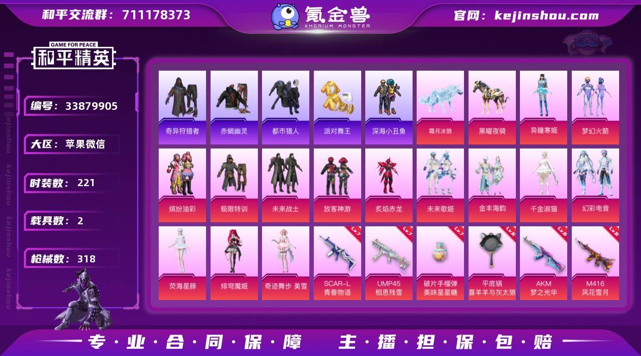【战神男神号!战神框 赤蝎 都市 金鞋 猪妹 放客 暗夜之虎 满地铁天赋】YXc29736-【无二次】【因赛季更新游戏段付以上号为准!】 苹果V-7稀有2载具14粉装16特效枪14热门221套装318枪皮 19印记 历史无敌战神 【7稀有】 奇异狩猎者 赤蝎幽灵 AWM-黄金龙骨 都市猎人 浪漫天命 派对舞王 派对舞王(金靴子) 【2载具】 黑曜夜骑 僚机-冰龙团团 【14粉装】 梦幻火箭 奇迹舞步美雪 绯穹魔姬 千金淑猫 荧海星豚 金丰海韵 异瞳寒姬 未来歌姬 幻彩电音 缤纷油彩 放客神游 极限特训 未来战士 炙焰赤龙 【16特效枪】 P90-魔童闹海敖丙 (3级) M416-电玩时刻 (5级) AKM-幽焰骑士 (3级) AKM-绿萝繁花 (5级) Kar98K-巳巳如意 (5级) DP-28-豹影疾电 (5级) 蜜獾-荧海星豚 (5级) UMP45-量子极限 (5级) GROZA-镜光银凌 (5级) UMP45-相思残雪 (7级) AKM-梦之光华 (6级) M416-风花雪月 (6级) MG3-洛神天依 (5级) AA12-G-萌骑幻想 (4级) 平底锅-喜羊羊与灰太狼 (6级) SCAR-L-青春物语 (7级) 【14热门】 Mark.06 龟仙人 暗夜之虎 萌神柯基 鹰眼刺客 暗夜之虎 深海小丑鱼 暗影哥特 粉红小猪 忍者信条 漫步者 M762-奇异狩猎者 M24-奇异狩猎者 S686-奇异狩猎者 【2飞行器】 龙翔九天飞行器 梦幻火箭...