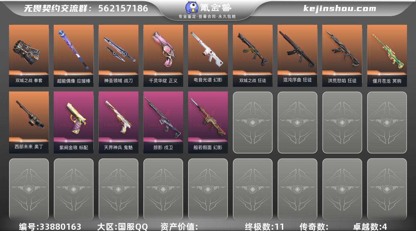 L3578 【精品号】流脓狂徒 电音幻影 紫金标配 天界戍卫 西部奥丁 双城之战狂徒 双城之战拳套 掠夺戍卫 千灵华绽正义 落英飞旋 混沌狂徒 恶鬼幻影 苍龙大狙 库存: 22950 剩余VP:11剩余R点:340 段位:青铜3历史最高:青铜3