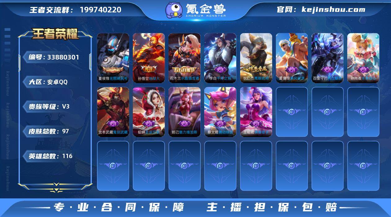 116英雄 97皮肤 可二次 可修改实名 男号 钱包注销不了