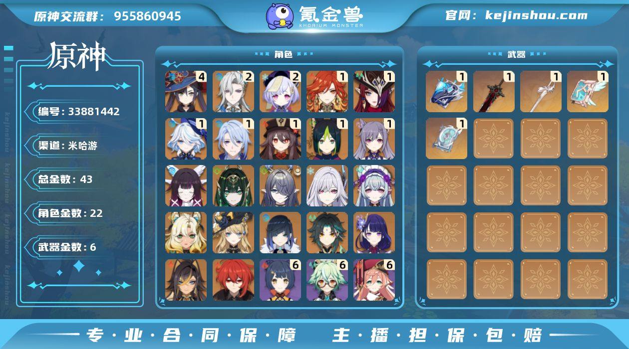 43黄!带崩铁双端!冰水战舰!月绽放战舰!月结晶战舰!龙芙!1命火神!2+1龙王!1命芙宁娜!1命恰斯卡!四命莫娜!二命七七!一命刻晴!一命胡桃!一命神里绫人!一命提纳里!迪卢克!魈!一命玛薇卡!雷电将军!夜兰!迪希雅!娜维娅!希诺宁!梦见月瑞希!丝柯克!菈乌玛!奈芙尔!哥伦比娅!拥有武器: 狼的末路!四风原典!天空之卷!风鹰剑!万世流涌大典 1精武器: 狼的末路!四风原典!天空之卷!风鹰剑!万世流涌大典 2+1那维莱特!