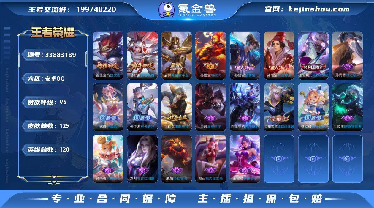 [19168291]V5 5传说 120英雄 125皮肤 不可二次 不可修改实名 男号 【稀有英雄】大司命,韩信(韩跳跳),夏洛特(夏师傅),艾琳,橘右京(橘子),娜可露露(鸟人),不知火舞,赵云,金蝉(唐僧),戈娅 【传说皮】黄金射手座,地狱火,末日机甲-孙尚香(绿蚂蚱) 【珍宝阁皮】女武神 【赛季/战令皮】海盐诗旅(s30),擒涛扼浪(s31),探海日志(s32),狮心王(s3),蜃楼王(s4),凯尔特女王(s7),狰(s8),饕餮(s9),御霄(s14),御旌(s15),御銮(s16),朔风刀(s17),混沌棋(s18),疑决卦(s19),醍醐杖(s20),原初探秘者(s21),万华元夜(s22),演武夺筹(s23),驱傩正仪(s24),千军破阵(s25),夺宝奇兵,迷踪丽影,西部大镖客-猪八戒,暗影游猎(游乐娃子),单词大作战,狂想玩偶喵,潮玩骑士王,云间偶戏,圣弓游侠,沙漠行僧(s26),金庭之子(s27),大漠名商(s28),云中旅人(s29) 【史诗皮】线条小狗-周瑜,海之女神,特工魅影,偶像歌手,末日机甲-吕布,时之恋人-孙尚香,水果甜心,星夜王子,德古拉伯爵,暗隐猎兽者,地狱岩魂,纤云弄巧,繁星吟游(呼啦呼啦),拒霜思,原初追逐者,鹰眼统帅,魅力维加斯 【限定皮】至尊宝,白虎志(电光耗子),梁祝,天狼溯光者,祈雪灵祝(雪兔子),天狼绘梦者,李小龙,如梦令-后羿,霸王别姬-虞姬,大圣娶亲 【普通皮】春野之旅...