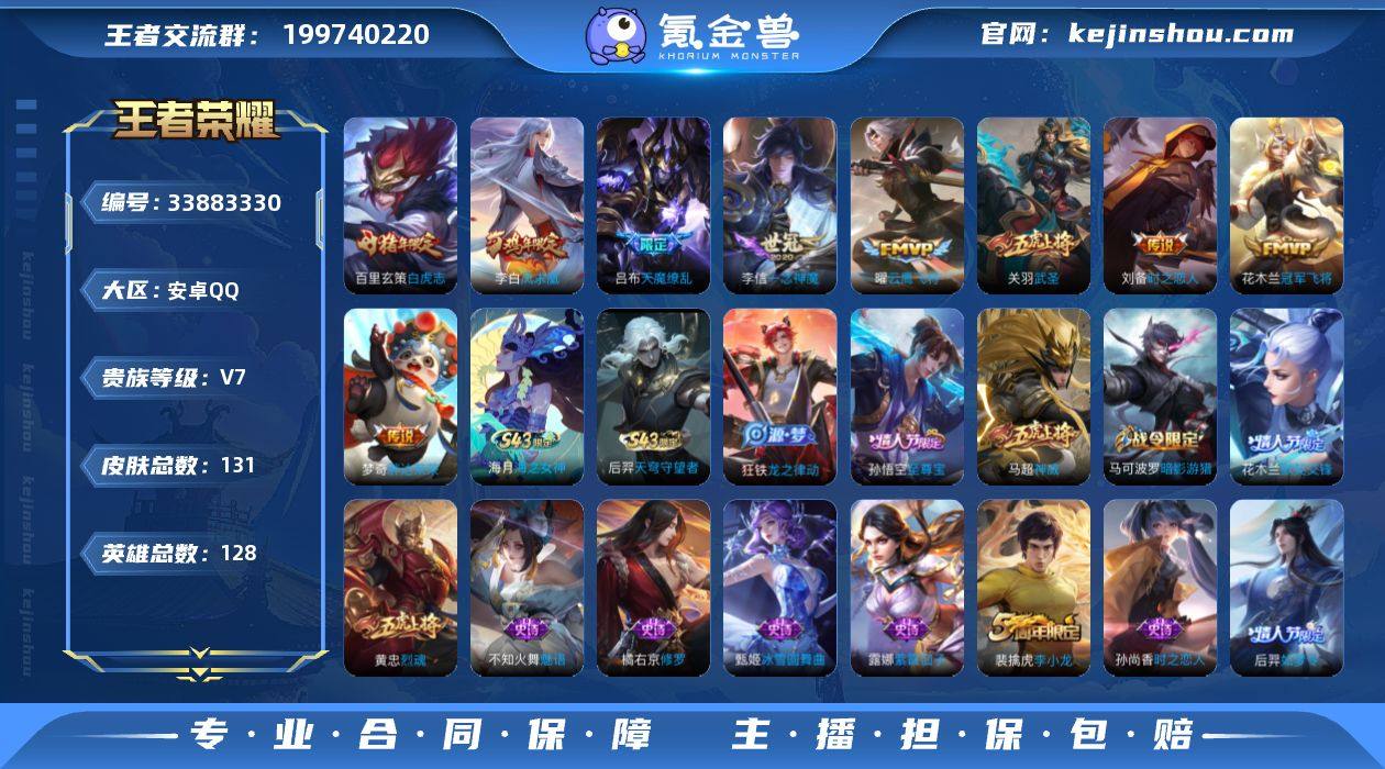 男生小玩具 4绝版限定 安卓Q-V7-至尊星耀IV段位-128英雄-131皮肤-9传说-44史诗 【传说皮肤】:关羽武圣,曜云鹰飞将,李信一念神魔,刘备时之恋人,百里玄策白虎志,花木兰冠军飞将,梦奇胖达荣荣,李白凤求凰,吕布天魔缭乱 【限定皮肤】:姜子牙天穹之誓,狄仁杰阴阳师,赵云皇家上将,嬴政优雅恋人,吕布天魔缭乱,夏侯惇朔风刀,马可波罗暗影游猎,狄仁杰魔术师,狄仁杰万华元夜,项羽海滩派对,老夫子醍醐杖,关羽武圣,程咬金演武夺筹,花木兰默契交锋,孙悟空至尊宝,后羿如梦令,李元芳银河之约,虞姬霸王别姬,钟馗驱傩正仪,雅典娜单词大作战,蔡文姬繁星吟游,鬼谷子原初探秘者,黄忠烈魂,苏烈千军破阵,百里玄策白虎志,弈星混沌棋,沈梦溪星空之诺,明世隐疑决卦,裴擒虎李小龙,裴擒虎擒涛扼浪,云中君纤云弄巧,猪八戒西部大镖客,上官婉儿梁祝,蒙犽狂想玩偶喵,鲁班大师探海日志,桑启海盐诗旅,张良古海寻踪,鬼谷子天穹祈灯,刘邦剑破天穹,周瑜熔金海岸 【年限皮肤】:李白凤求凰,百里玄策白虎志 【赛季限定】:夏侯惇朔风刀,弈星混沌棋,明世隐疑决卦,老夫子醍醐杖,鬼谷子原初探秘者,狄仁杰万华元夜,程咬金演武夺筹,钟馗驱傩正仪,苏烈千军破阵...