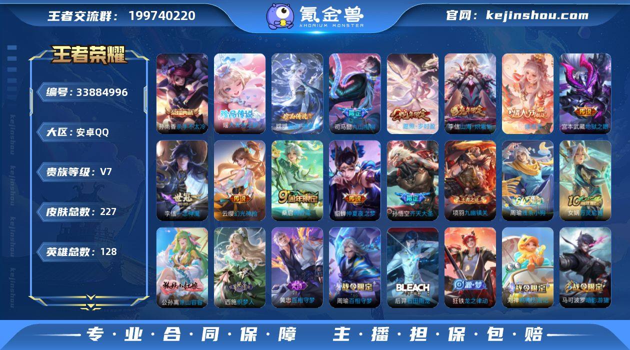 DB3890-安Q-不可改实名可转区-贵7-226皮1典藏2珍品传说10传说2星传说-大耳狗之梦 器灵·落星盏 杀手不太冷 九山相柳 齐天大圣 山海·炽霜斩 幻光神枪 续相思 愿照·岁时盈 安卓QQ/绝世王者/226皮肤/127英雄/1典藏/0珍品无双/0无双/2珍品传说/10传说/69史诗/8稀有英雄 【2 珍品传说】大耳狗之梦 瑶,器灵·落星盏 嫦娥, 【1 典藏皮肤】杀手不太冷 孙尚香, 【10 传说皮肤】九山相柳 司马懿,齐天大圣 孙悟空,仲夏夜之梦 貂蝉,地狱之眼 宫本武藏,山海·炽霜斩 李信,一念神魔 李信,幻光神枪 云缨,愿照·岁时盈 虞姬,鸣野蒿 桑启,续相思 西施, 【69 史诗皮肤】龙鼓争鸣 蒙犽,蔬乡物语 鲁班七号,紫霞仙子 露娜,百解令 蒙犽,暗渊魔法 司马懿,暗影游猎 马可波罗,燃音魔法 高渐离,妄想食味 姬小满,德古拉伯爵 刘邦,山海·玄木吟 马可波罗,心灵战警 亚瑟,五谷丰年 鬼谷子,诗语江南 西施,无心 元歌,鬼剑武藏 宫本武藏,百相守梦 黄忠,星夜王子 白起,寅虎·心曲 杨玉环,至美·乘鲤谣 西施,线条小狗 周瑜,魅力维加斯 妲己,如梦令 嫦娥,偶像歌手 王昭君,荣光圣徽 蒙恬,女仆咖啡 妲己,九幽镇关 项羽,星界游侠 暃,舞动绿茵 蔡文姬,暗夜贵公子 嬴政,鹰眼统帅 狄仁杰,李小龙 裴擒虎,金属风暴 墨子,傲雪梅枪...