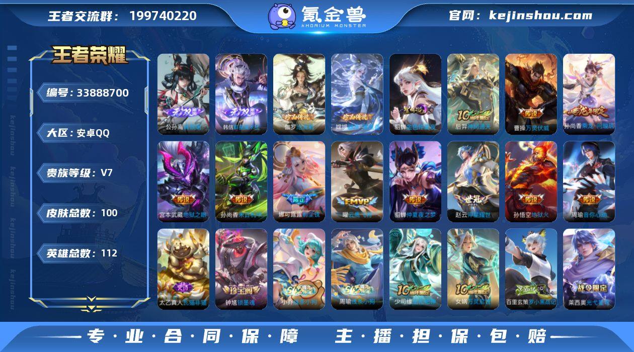 【高性价比·11传说·韩信群星魔术团·离恨烟·器灵落星盏·沧流箭·乘龙问璇玑·前尘镜·可二次】YXw23742-安卓Q-112英雄-100皮肤-2王者印记-90铭文-贵族积分3w【贵族7】【2无双·2珍品·1星传说·11传说·9按键】【因赛季更新游戏段付以上号为准!】 【英雄全皮】:孙权全皮,敖隐全皮 【无双皮肤】:公孙离离恨烟,韩信群星魔术团 【珍品传说】:伽罗沧流箭,嫦娥器灵落星盏 【星元皮肤】:貂蝉金色仲夏夜 【传说皮肤】:后羿神树通天,曹操万灵伏威,孙尚香乘龙问璇玑,娜可露露前尘镜,赵云淬星耀世,周瑜音你心动,曜云鹰飞将,貂蝉仲夏夜之梦,孙尚香末日机甲,宫本武藏地狱之眼,孙悟空地狱火 【限定皮肤】:公孙离离恨烟,狄仁杰阴阳师,赵云皇家上将,元歌无心,狄仁杰魔术师,项羽海滩派对,娜可露露前尘镜,公孙离蜜橘之夏,鬼谷子天穹祈灯,孙尚香乘龙问璇玑,鲁班七号蔬乡物语,李元芳蔬乡物语,刘邦剑破天穹,上官婉儿群星魔术团,程咬金群星魔术团,韩信群星魔术团,镜青焰无极,项羽苍威无极,刘备异域游侠 【年限皮肤】:孙尚香乘龙问璇玑 【赛季限定】:鬼谷子天穹祈灯,刘邦剑破天穹,亚瑟荣光之誓 【战令限定】:鲁班七号蔬乡物语,李元芳蔬乡物语,镜青焰无极,项羽...