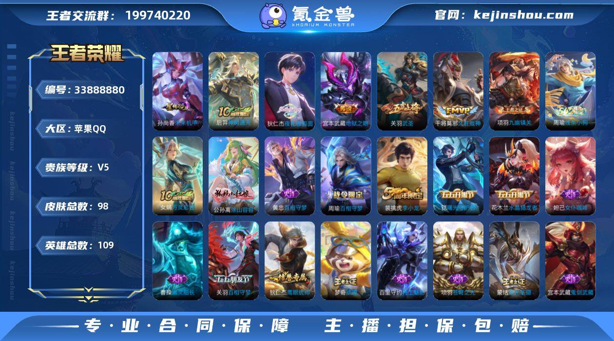 苹果Q-V1-永恒钻石IV段位-109英雄-98皮肤-5传说-27史诗-小国标典韦12025【传说皮肤】:后羿神树通天,狄仁杰夜礼服假面,关羽武圣,干将莫邪久胜战神,宫本武藏地狱之眼【限定皮肤】:狄仁杰阴阳师,赵云皇家上将,项羽海滩派对,关羽武圣,关羽百相守梦,程咬金演武夺筹,兰陵王金庭之子,李元芳云中旅人,钟馗驱傩正仪,雅典娜单词大作战,鬼谷子原初探秘者,梦奇顽趣,沈梦溪大漠名商,裴擒虎李小龙,裴擒虎擒涛扼浪,蒙犽狂想玩偶喵,桑启海盐诗旅,艾琳女武神,张良古海寻踪,狄仁杰夜礼服假面,蒙恬荣光圣徽,鬼谷子天穹祈灯【赛季限定】:鬼谷子原初探秘者,程咬金演武夺筹,钟馗驱傩正仪,兰陵王金庭之子,沈梦溪大漠名商,李元芳云中旅人,桑启海盐诗旅,裴擒虎擒涛扼浪,张良古海寻踪,鬼谷子天穹祈灯,东皇太一噬灭天穹,太乙真人谧流熔炉,钟馗虚灵犬护,甄姬逆浪荇歌,亚瑟荣光之誓,梦奇顽趣,蒙恬荣光圣徽,项羽九幽镇关【战令限定】:蒙犽狂想玩偶喵,雅典娜单词大作战,周瑜百相守梦,孙策百相守梦,周瑜线条小狗【史诗皮肤】:海月海之女神,周瑜线条小狗,项羽九幽镇关,女娲万灵启世,公孙离涂山容容,黄忠百相守梦,周瑜百相守梦,蒙恬荣光圣徽,关羽百...