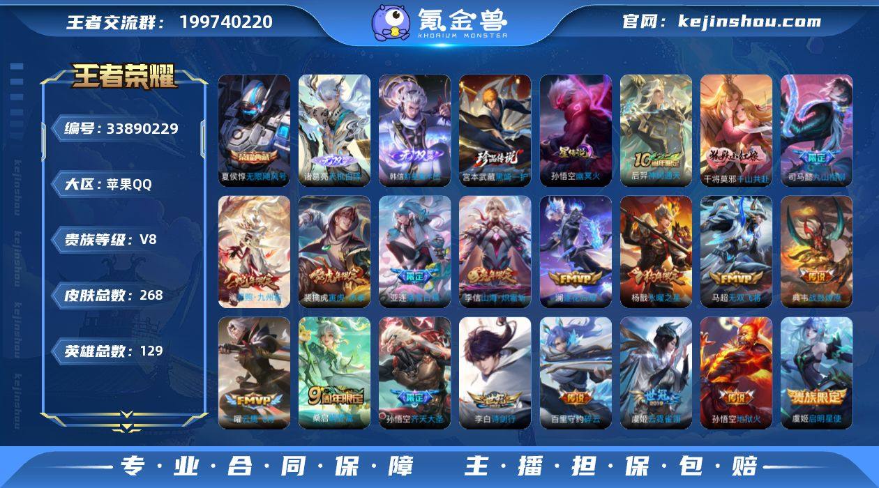 【精氪主推·19传说·狸尾假日天幕·韩信群星魔术团·天机白泽·黑崎一护·无限飓风号·寅虎赤拳·永曜之星·山海炽霜·千山共赴·九山相柳·落雪白狼斩·诗剑行·可二次】YXw26033-苹果Q-129英雄-268皮肤-2王者印记-191铭文-贵族积分9w【贵族8】【1典藏·2无双·1珍品·1星传说·19传说·1天幕·32按键】【因赛季更新游戏段付以上号为准!】 【英雄全皮】:司马懿全皮,孙权全皮,敖隐全皮,戈娅全皮 【荣耀典藏】:夏侯惇无限飓风号 【无双皮肤】:诸葛亮天机白泽,韩信群星魔术团 【珍品传说】:宫本武藏黑崎一护 【星元皮肤】:孙悟空幽冥火 【天幕】:狸尾假日天幕 【传说皮肤】:后羿神树通天,干将莫邪千山共赴,司马懿九山相柳,澜愿照九州拓,桑启鸣野蒿,亚连落雪白狼,典韦战鼓燎原,澜逐花归海,孙悟空齐天大圣,李信山海炽霜斩,李白诗剑行,百里守约碎云,马超无双飞将,裴擒虎寅虎赤拳,虞姬启明星使,曜云鹰飞将,虞姬云霓雀翎,杨戬永曜之星,孙悟空地狱火 【限定皮肤】:大乔绒语心约,姜子牙天穹之誓,杨戬破阵退雄兵,狄仁杰阴阳师,赵云皇家上将,孙尚香蔷薇恋人,钟无艳超时空战士,芈月白晶晶,元歌云间偶戏,元歌无心,甄姬落雪兰心,马可波罗山海玄木吟,狄仁杰魔术师,达...