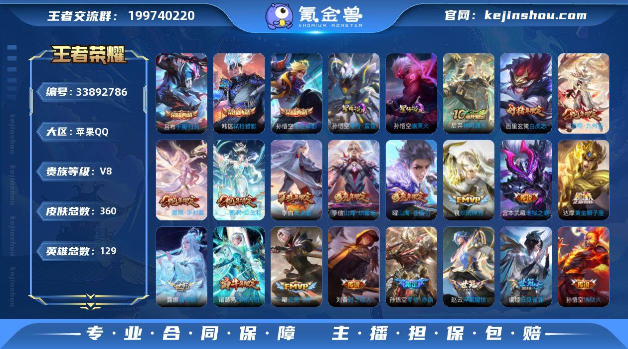 W16292,,,可立即换绑无需挂单养号,,钱包注销不了,,铭文满级,,典藏3,,传说20,,,星传说2,,,按键15,,,夺宝23,,苹果Q-V8-永恒钻石III段位-129英雄-360皮肤-3典藏皮肤-20传说-114史诗 【英雄全皮】:猪八戒全皮,敖隐全皮,影全皮 【荣耀典藏】:孙悟空全息碎影,韩信弑枪猎影,吕布千魇归渊 【传说皮肤】:后羿神树通天,妲己愿照众生和,澜愿照九州拓,虞姬愿照岁时盈,露娜霜月吟,曜山海苍雷引,李信山海炽霜斩,赵云淬星耀世,诸葛亮时雨天司,镜炽阳神光,虞姬启明星使,孙悟空零号赤焰,曜云鹰飞将,刘备时之恋人,虞姬云霓雀翎,达摩黄金狮子座,百里玄策白虎志,李白凤求凰,宫本武藏地狱之眼,孙悟空地狱火 【限定皮肤】:白起狰,姜子牙天穹之誓,狄仁杰阴阳师,虞姬凯尔特女王,赵云皇家上将,墨子神迹守卫,嬴政白昼王子,孙尚香蔷薇恋人,庄周蜃楼王,庄周高山流水,阿轲迷踪丽影,钟无艳超时空战士,孙膑妖精王,扁鹊炼金王,芈月重明,芈月白晶晶,芈月幻夜卜梦,吕布猎兽之王,吕布御风骁将,周瑜赤莲之焰,元歌云间偶戏,元歌无心,夏侯惇朔风刀,甄姬游园惊梦,甄姬落雪兰心,曹操烛龙,典韦穷奇,典韦蓝屏警告,马可波罗逐梦之星,马可...