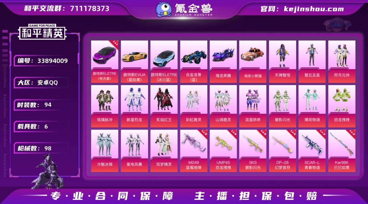 【LHPX1435】可二次【特价出售/店主推荐】 安卓 手Q-15粉装-8特效枪-6载具-1粉色飞行器-55079热力值-1王牌印记-94套装-98枪皮【红色载具】:路特斯ELETRE(电光紫)(一级)【热门品类】:套装-粉红小猪【粉色套装】:粉装-天禅智恒,粉装-彗云及圣,粉装-狩月元帅,粉装-琉璃脉冲,粉装-新星烈龙,粉装-炙焰红王,粉装-彩虹鹿灵,粉装-山涧鹿灵,粉装-流星咚咚,粉装-碧影闪光,粉装-薄荷物语,粉装-恐龙拽拽,粉装-冷魅冰骑,粉装-紫电风暴,粉装-筑梦精灵【粉色枪皮等级】:SCAR-L-青春物语(三级),UMP45-恐龙拽拽(四级),Kar98K-巳巳如意(三级),AWM-橘柚倾心(三级),SKS-碧影闪光(四级),M249-蓝莓炮弹(五级),DP-28-幻梦音符(四级),PKM-萌骑夺宝(二级)【粉色载具】:路特斯ELETRE(电光紫),路特斯EVIJA(星际黄),路特斯ELETRE(冰川蓝),合金龙骨(蓝),海龙奔腾,俏皮小熊猫【粉色枪皮】:SCAR-L-青春物语,UMP45-恐龙拽拽,Kar98K-巳巳如意,AWM-橘柚倾心,SKS-碧影闪光,M249-蓝莓炮弹,DP-28-幻梦音符,PKM-萌骑夺宝【粉色飞行器】:伏魔团飞行器