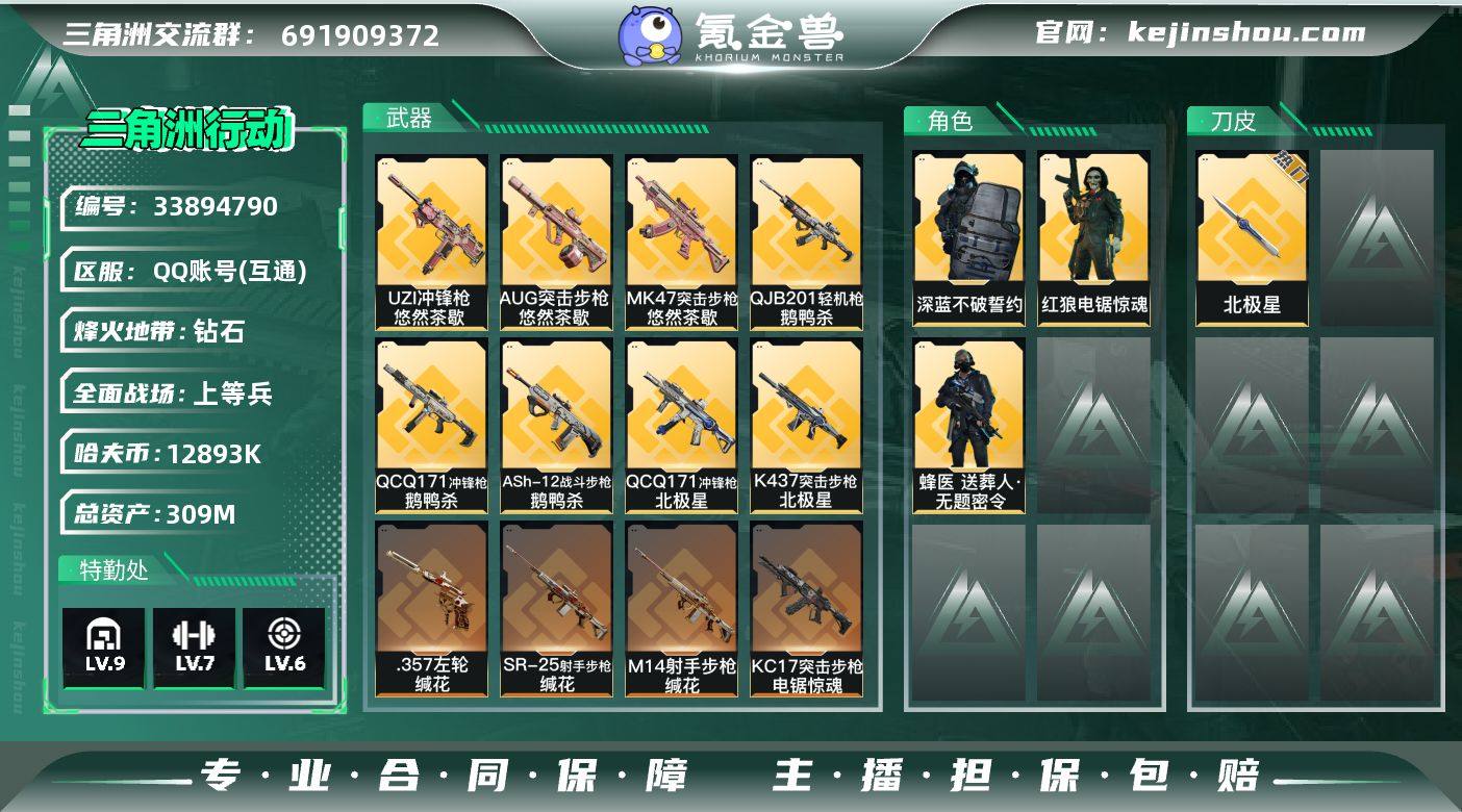 【PTSJZ3835】总资产309M/哈夫币1289万/传说近战数1/传说枪皮数26/战场等级36/行动等级60/安全箱等时效性道具以游戏内数据为准,详情请看图/蜂医-送葬人·无题密令(S5)/深蓝-不破誓约(S6)/红狼-电锯惊魂/近战-北极星/近战-黑鹰/M4A1突击步枪-阿米娅/ASh-12战斗步枪-鹅鸭杀/M16A4突击步枪-狩猎时刻/AUG突击步枪-悠然茶歇/AK-12突击步枪-特斯拉线圈/SCAR-H战斗步枪-启航/G3战斗步枪-狩猎时刻/G3战斗步枪-骑士/CAR-15突击步枪-阿米娅/K437突击步枪-北极星/KC17突击步枪-电锯惊魂/MK47突击步枪-悠然茶歇/Vector冲锋枪-狩猎时刻/UZI冲锋枪-特斯拉线圈/UZI冲锋枪-悠然茶歇/SR-3M紧凑突击步枪-特斯拉线圈/勇士冲锋枪-能天使-午夜邮差/QCQ171冲锋枪-北极星/QCQ171冲锋枪-鹅鸭杀/725双管霰弹枪-送葬人-无题密令/M250通用机枪-骑士之心/QJB201轻机枪-鹅鸭杀/M14射手步枪-缄花/SR-25射手步枪-缄花/.357左轮-缄花/复合弓-黑-天际线/ASh-12战斗步枪-无极限/AUG突击步枪-蝮蛇/SG552突击步枪-深海恐惧/SG552突击步枪-哈夫克警备/SCAR-H战斗步枪-囚徒/G3战斗步枪-哈夫克警备/AS Val突击步枪-典狱官/腾龙突击步枪-无垢/K437突击步枪-守护者/MP5冲锋枪-战术竞备/P90冲锋枪-紧急戒备/Vector冲锋枪-...