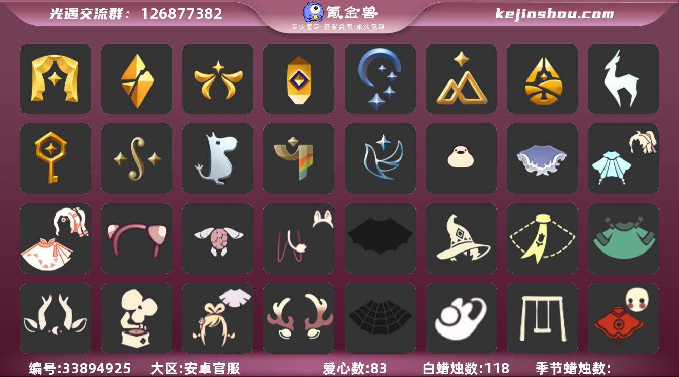 lyg140区服:国服安卓官服,换绑时间:11.12,登入方式:手机【15季卡】白枭新年裤拖鞋鹿角巫师帽绊爱蝙蝠斗福娃阳伞茶桌音乐桌'蜡烛数量:118,爱心:83,当前身高4.191,最高身高2.026,最矮身高14.026,已经毕业地图:晨岛,云野,雨林,霞谷,暮土,禁阁,已经毕业季节:双星季,青鸟季,彩染季,姆明季,二重奏季,筑巢季,九色鹿季,归巢季,拾光季,夜行季,追忆季,欧若拉季,破晓季,表演季,稀有礼包:祥云瑞气服饰,玉兔拖鞋,星月头冠,神鹿祝福头饰,金鳞耳坠,日光耳环,满月耳坠,巫术犄角,圣诞鹿角,优雅领结,水母肩饰,树精肩饰,姆明饰品套装,温暖绒帽,鲤鱼龙门,蛛网朋克,巫师帽,南瓜头,绊爱套装,海蓝波浪发型,渐变双马尾发型,贝壳,雪花发卡,玉兔,大桔大利,四叶草头饰,心心相印发饰,小王子围巾,星球夹克,新春福娃,蝙蝠斗篷,白雪斗篷,暖冬瑞雪,姆明妈妈手作斗篷,衔福献瑞礼包,阳伞,祥云瑞气纸伞,献瑞折扇礼包,情人秋千,情人小船,茶桌,冥龙南瓜,夏日冲浪,中国绊爱大铁头,古典音乐桌椅,周年庆影院套餐,青衫落拓礼包,粽子头饰,小黄鸭头饰,热门物品:蝴蝶结,公主头,正太头,樱花头,猫猫头,武士裤,白棉裤,背带裤,花环头饰,宴会围巾,虚荣发型,红耳机,黄鼠狼面具,花瓣斗篷,灯泡斗篷,红金斗篷,白金斗篷,白鸟...