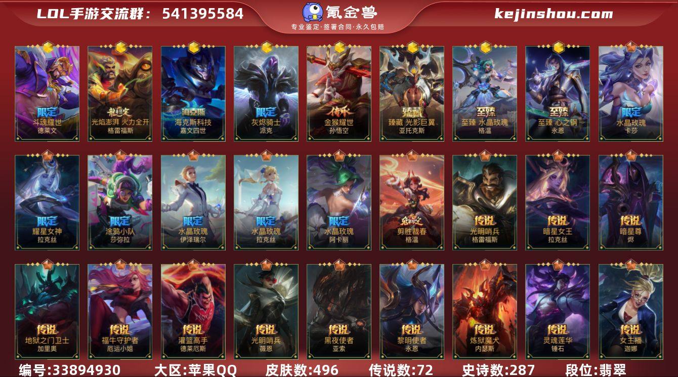 皮肤数: 496