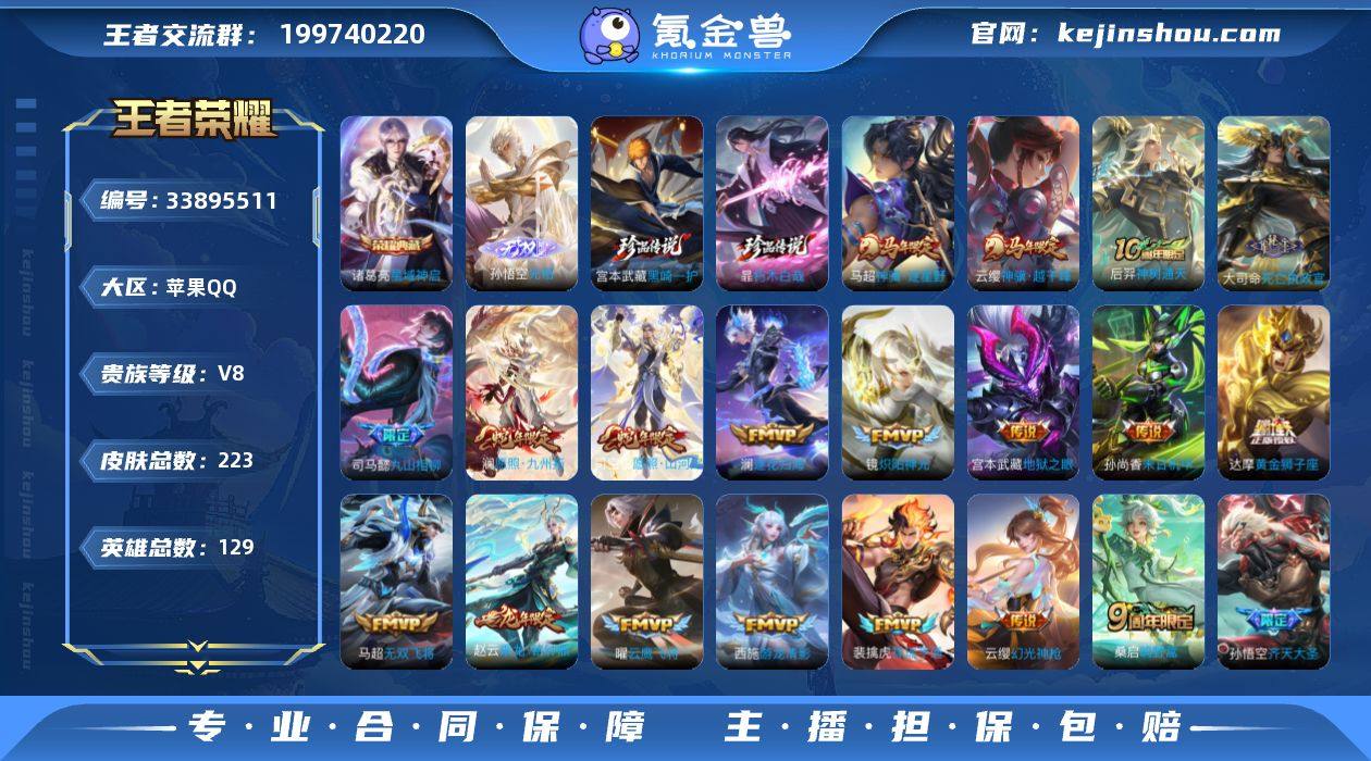 打野29段1天幕苹果Q-V8-永恒钻石I段位-129英雄-223皮肤-1典藏皮肤-1无双-2珍品传说-25传说-65史诗 【英雄全皮】:司马懿全皮,孙权全皮,大司命全皮,敖隐全皮 【荣耀典藏】:诸葛亮星域神启 【无双皮肤】:孙悟空无相 【珍品传说】:宫本武藏黑崎一护,暃朽木白哉 【传说皮肤】:云缨神骥越千峰,马超神骥逐星野,后羿神树通天,大司命死亡执政官,司马懿九山相柳,司空震愿照山河定,澜愿照九州拓,云缨幻光神枪,裴擒虎祥瑞亨通,桑启鸣野蒿,赵云乘龙铭钟鼎,澜逐花归海,孙悟空齐天大圣,吕布怒海麟威,马超无双飞将,赵云淬星耀世,西施游龙清影,镜炽阳神光,虞姬启明星使,曜云鹰飞将,刘备时之恋人,达摩黄金狮子座,孙尚香末日机甲,宫本武藏地狱之眼,孙悟空地狱火 【限定皮肤】:暃埋骨钱,蔡文姬夏日便利店,大乔绒语心约,虞姬夏日便利店,姜子牙天穹之誓,杨戬破阵退雄兵,李白谪仙醉月,狄仁杰阴阳师,赵云皇家上将,高渐离玩趣恶龙,元歌云间偶戏,元歌无心,马可波罗山海玄木吟,狄仁杰魔术师,狄仁杰万华元夜,项羽海滩派对,貂蝉逐梦之音,孙悟空至尊宝,孙悟空孙行者,孙悟空齐天大圣,刘备百相守梦,李元芳云中旅人,虞姬启明星使,雅典娜黎明之约,鬼...