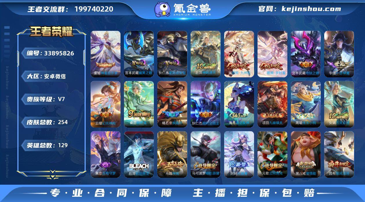 安卓V-无二次-V7(35173分)-254皮-1典藏-9传说-10584场-6按键-【最新段位以实际为准,截图仅供参考】 【英雄全皮】:孙权全皮,橘右京全皮,戈娅全皮 【荣耀典藏】:虞姬神鉴启示录 【传说皮肤】:后羿神树通天,澜愿照九州拓,虞姬愿照岁时盈,云缨幻光神枪,桑启鸣野蒿,橘右京枫霜尽,李信一念神魔,宫本武藏地狱之眼,狄仁杰超时空战士 【限定皮肤】:蒙犽顽岩魄,姜子牙天穹之誓,狄仁杰阴阳师,赵云皇家上将,墨子神迹守卫,孙尚香蔷薇恋人,庄周高山流水,高渐离玩趣恶龙,钟无艳超时空战士,芈月重明,吕布御风骁将,元歌云间偶戏,元歌无心,甄姬落雪兰心,马可波罗暗影游猎,狄仁杰魔术师,狄仁杰万华元夜,达摩沙漠行僧,项羽海滩派对,老夫子醍醐杖,老夫子航海奇遇记,程咬金演武夺筹,兰陵王金庭之子,橘右京枫霜尽,亚瑟潮玩骑士王,后羿圣弓游侠,李元芳银河之约,李元芳云中旅人,虞姬霸王别姬,钟馗驱傩正仪,干将莫邪真爱魔法,雅典娜单词大作战,雅典娜黎明之约,鬼谷子原初探秘者,鬼谷子五谷丰年,苏烈千军破阵,百里玄策原初追逐者,梦奇顽趣,沈梦溪大漠名商,明世隐疑决卦,裴擒虎李小龙,裴擒虎擒涛扼浪,狂铁御狮,伽罗天狼溯光者,猪八戒西部大镖...