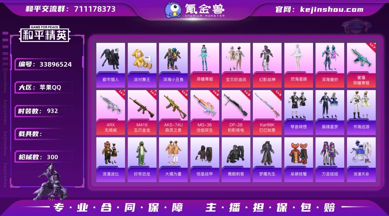 【特价出售】钱包无法注销苹果Q-7稀有5粉装12特效枪28热门227套装300枪皮 83770热力值 11印记 历史卓越王牌17星 【7稀有】 M416-黄金龙骨 AWM-黄金龙骨 AKM-缤纷海域 都市猎人 浪漫天命 派对舞王 派对舞王(金靴子) 【5粉装】 宝贝奶油派 荧海星豚 深海曼妙 异瞳寒姬 幻影战神 【12特效枪】 M416-五爪金龙 (7级) AKS-74U-森灵之息 (5级) Kar98K-巳巳如意 (5级) MG-36-沧焰双生 (5级) DP-28-豹影疾电 (5级) ARX-无垠阁 (7级) 蜜獾-异瞳寒姬 (7级) Mk14-福马献瑞 (3级) AA12-G-萌骑幻想 (5级) PKM-萌骑夺宝 (1级) UMP45-萌骑冒险 (5级) ACE32-萌骑漫游 (5级) 【28热门】 小丑鱼 浪漫假日 青涩年华 雪山精英 梦魇先生 呆萌铁蟹 万圣娃娃 鹰眼刺客 好奇恐龙 深海小丑鱼 大橘为重 浪漫波比 金羽特工 SS1特训 团圆交子 瑞龙福将 忍者信条 狂沙舞者 漫步者 破蛋小黄鸡 风华少年志 白月香洋装 新侠客行 黑色刀锋 弄潮海豚 M416-魔法学院 M762-瑞龙福将 S686-奇异狩猎者 【2头盔】 幻影战神头盔 金羽特工头盔 【5背包】 幻影战神背包 萌熊伴侣背包 深海小丑鱼背包 潮萌小黄鸭背包 金羽特工背包