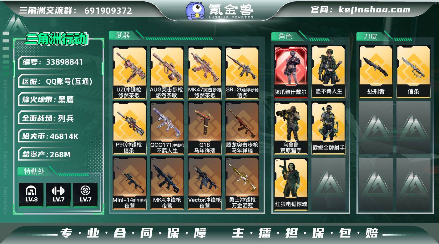 【PTSJZ3961】总资产268M/哈夫币4681万/传说近战数1/传说枪皮数23/战场等级28/行动等级60/安全箱等时效性道具以游戏内数据为准,详情请看图/骇爪-维什戴尔/红狼-电锯惊魂/露娜-金牌射手(S7)/乌鲁鲁-荒原猎手/蛊-不羁人生/近战-信条/近战-处刑者/近战-黑鹰/AUG突击步枪-悠然茶歇/SG552突击步枪-运动员/SCAR-H战斗步枪-启航/腾龙突击步枪-马年祥瑞/腾龙突击步枪-万金泪冠/KC17突击步枪-电锯惊魂/MK47突击步枪-悠然茶歇/P90冲锋枪-信条/Vector冲锋枪-夜莺/UZI冲锋枪-悠然茶歇/勇士冲锋枪-万金泪冠/QCQ171冲锋枪-不羁人生/MK4冲锋枪-夜莺/Mini-14射手步枪-夜莺/M14射手步枪-蛮荒/M14射手步枪-缄花/SKS射手步枪-骑士/SR-25射手步枪-信条/SR-25射手步枪-缄花/R93狙击步枪-维什戴尔/AWM狙击步枪-万金泪冠/.357左轮-缄花/G18-马年祥瑞/QBZ95-1突击步枪-曙光/K416突击步枪-冬日风情/K416突击步枪-腊梅/K416突击步枪-阿萨拉特攻/AUG突击步枪-蝮蛇/M7战斗步枪-百步穿杨/SG552突击步枪-深海恐惧/SG552突击步枪-哈夫克警备/G3战斗步枪-流沙送葬/AS Val突击步枪-百步穿杨/K437突击步枪-丛林谍踪/MP5冲锋枪-战术竞备/MP5冲锋枪-竞技风/Vector冲锋枪-百步穿杨/SR-3M紧凑突击步枪-开工大吉/勇士...