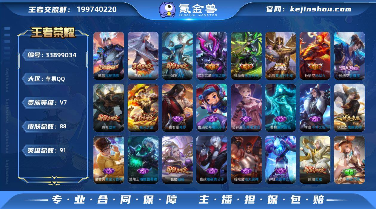 JJ4624:苹果Q-V7-永恒钻石III-91英雄-88皮肤-1典藏-6传说-22史诗 【稀有英雄】 嬴政 不知火舞 橘右京 夏洛特 娜可露露 韩信 赵云 【典藏皮肤】 弑枪猎影 【传说皮肤】 地狱火 凤求凰 地狱之眼 黄金射手座 末日机甲 太华 【限定皮肤】 至尊宝 太华 末日机甲 暗影游猎 岱宗 凤求凰 幽恒 地狱之眼 辉光之辰 玄嵩 【史诗皮肤】 电玩小子 银河之约 暗影游猎 无限星赏官 修罗 黄金分割率 乐园奇幻夜 暗夜贵公子 鹰眼统帅 飞衡 李小龙 玄嵩 魔术师 皇家上将 至尊宝 辉光之辰 功夫厨神 岱宗 千年之狐 幽恒 幽灵船长 暗隐猎兽者 【勇者皮肤】 圆桌骑士 沙漠行僧 大漠名商 大发明家 海盐诗旅 醍醐杖 白色死神 黑桃队长 阴阳师 古海寻踪 海滩派对 万华元夜 演武夺筹 红桃皇后 原初探秘者 星空之诺 西部大镖客 疑决卦 五福同心 霸王丸 敏锐之力 忍·炎影 万事如意 擒涛扼浪 龙腾万里 金庭之子 万象初新 教廷特使 街头霸王 云中旅人 混沌棋 幻想奇妙夜 驱傩正仪 白执事 【其他皮肤】 芝加哥教父 三太子 花见巫女 爱与和平 万圣前夜 木偶奇遇记 福禄兄弟 海军大将 魇语军师 归虚梦演 激情绿茵 埃及法老 归虚梦演 西部大镖客 威尼斯狂欢 幸存者 战争女神 创世神祝 森 地府判官 天启骑士