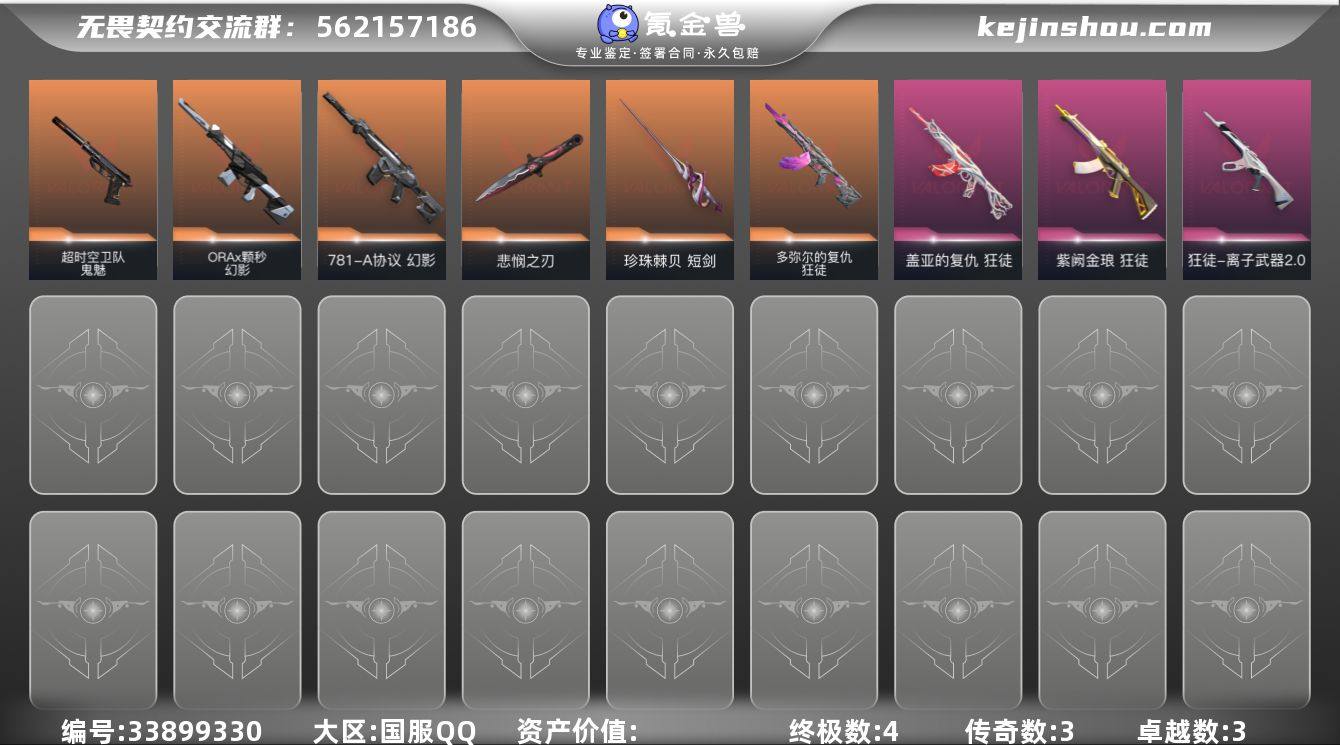 LV等级160/皮肤总价值17190/段位青铜/总皮肤数量28/刀皮数量3/枪皮数量25/套装数量1/具体详情请看图/无畏契约季前邀请赛套装/幻棱/炼狱/维斯/暮蝶/钛狐/壹决/铁臂/捷风/雷兹/幽影/不死鸟/贤者/猎枭/蝰蛇/零/芮娜/奇乐/尚勃勒/霓虹/斯凯/夜露/星礈/K/O/海神/盖可/黑梦/钢锁/无畏契约季前邀请赛 悲悯之刃/短剑-珍珠棘贝/魄月玄刃/多弥尔的复仇 狂徒/狂徒-盖亚的复仇/狂徒-紫阙金琅/狂徒-离子武器2.0/幻影-ORAx颗秒/幻影-781-A协议/幻影-珍珠棘贝/戍卫-珍珠棘贝/獠犬-复古浪潮/冥驹-复古浪潮/莽侠-深海水族/战神-深海水族/雄鹿-复古浪潮/骇灵-珍珠棘贝/蜂刺-深海水族/标配-超能偶像/正义-复古浪潮/鬼魅-超时空卫队/鬼魅-流星兵团/鬼魅-诡秘蛇影/鬼魅-扑棱扑棱/鬼魅-星云暗涌/狂怒-珍珠棘贝/狂怒-蒙太奇/短炮-深海水族/南瓜盛典 卡面/无畏契约:暮蝶 卡面/修车达人 卡面/正义的化身 卡面/铁之华 卡面/时间到 卡面/最高舞台 卡面/声感陷阱设计图 卡面/梦幻奶茶 卡面/终章:打造专属狂徒 卡面/趁热吃 卡面/源能反应 卡面/零点嗅探设计图 卡面/终章:瓦娃脸雪糕 卡面/表象之下 卡面/虹吸式咖啡壶 卡面/源能者美容 卡面/脚踝终结者 卡面 /夜班 卡面/瓦娃脸雪糕 卡面 /沙雕爆能器 卡面/...