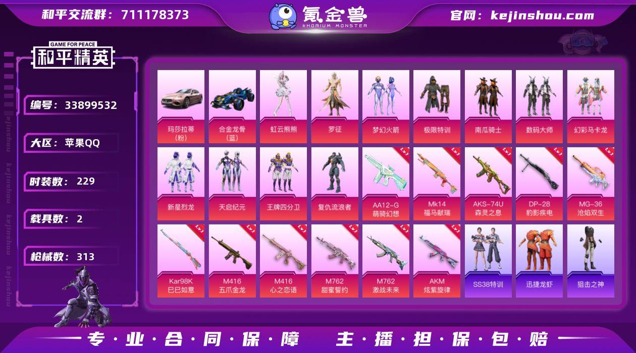 【战神框红眼罩猫包13粉装11特效枪2载具 秒换绑不用等】 苹果Q区-102417热力值-历史最高段位:无敌战神-229套装-313枪皮 【2载具】 玛莎拉蒂粉色 合金龙骨蓝色【7稀有】 攀登者外套/裤子 百万伏待背包(猫包) 恶魔人蛛 M416-南瓜骑士 冷酷挑战者 AKM-百万伏特 红眼罩【13粉装】 极限特训 梦幻火箭 缤纷油彩(猪脸妹) 数码大师 幻彩马卡龙 复仇流浪者 虹云熊熊 新星烈龙 王牌四分卫 天启纪元 角色-南瓜骑士 角色-罗征【11特效枪】 M416-五爪金龙(3级) M416-心之恋语(6级) AKM-炫紫旋律(6级) AKS-74U-森灵之息(4级) Mk14-福马献瑞(4级) AA12-G-萌骑幻想(2级) M762-甜蜜誓约(7级) M762-激战未来(1级) Kar98K-巳巳如意(1级) DP-28-豹影疾电(5级) MG-36-沧焰双生(4级)【256热门】 暗夜契约(假黑丝) 暗影哥特(红眼罩) 浪漫天命 雪山精英(老6服) 潮萌小黄鸭 激萌罗小黑 迅捷狂鲨 浪漫波比 金羽特工 罗小黑 团圆交子 瑞龙福将 纯白誓言 狂沙舞者 M416-仓鼠灰灰 冰公主 冰川格斗者 缤纷焰火 SS9特训 SS8特训 SS6特训 SS4特训 SS3特训 SS27特训 SS26特训 SS25特训 SS23特训 SS10特训 S12K-华贵君王 Mk47-粉色回忆 Mini14-梦幻火箭 M762-乌木金纹 M24-未来战士 Kar98K-王子的夏天 AWM-...