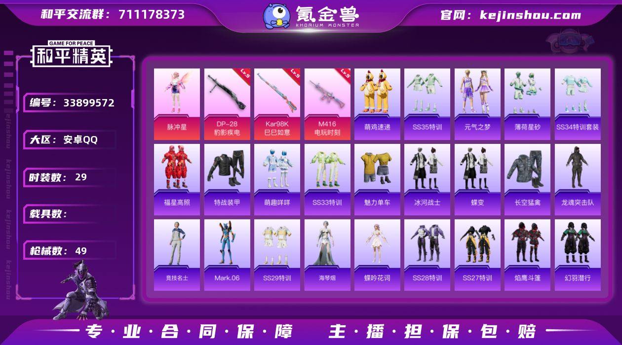 "H7126有二次 安卓Q-段位黄金 44级 29套装49枪皮 【1粉装】 角色-脉冲星 【3特效枪】 M416-电玩时刻 5级 Kar98K-巳巳如意 5级 DP-28豹影疾电 5级 【热门】 角色-Mark.06 角色-蝶吟花词 角色-海琴烟 "