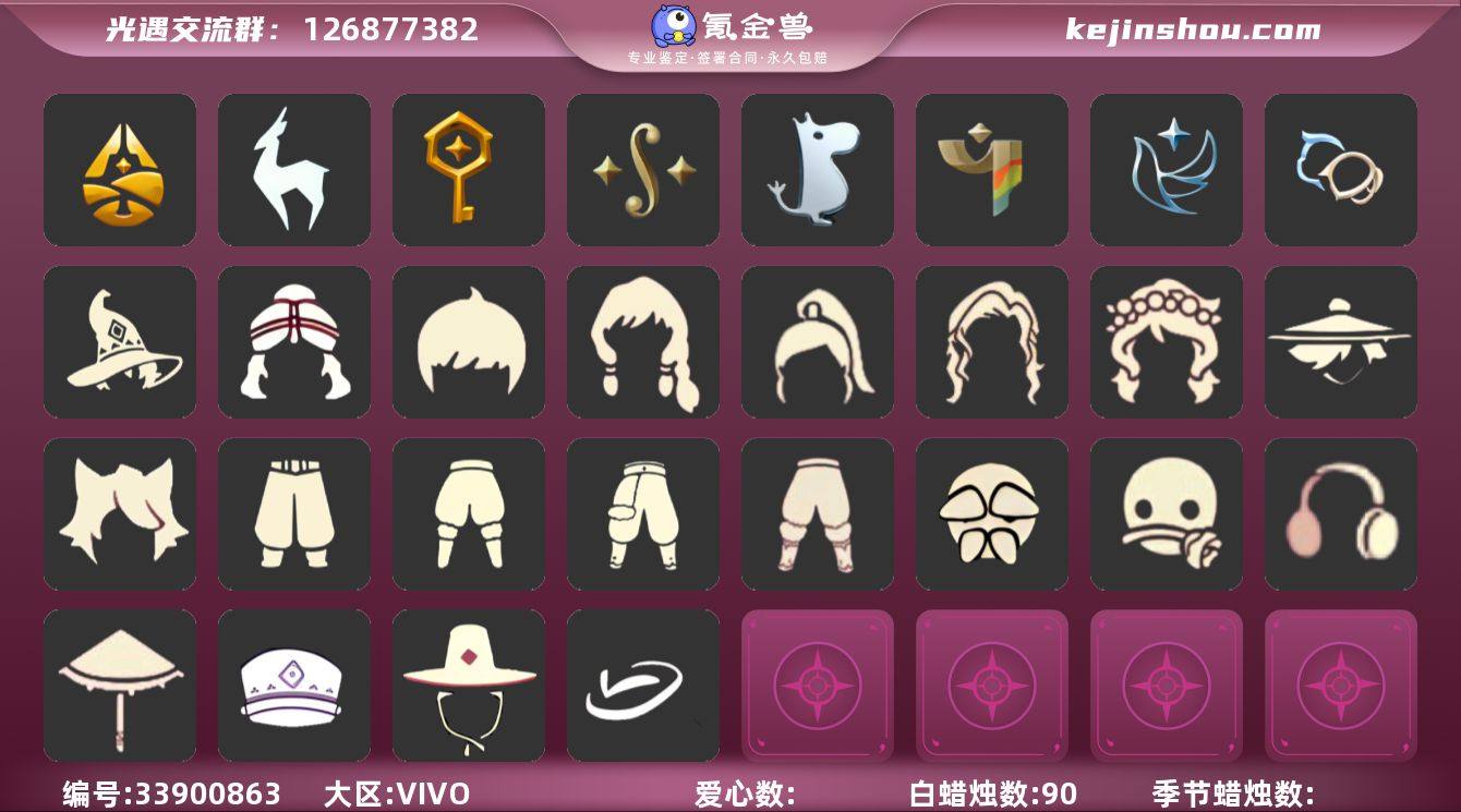 "9季蝙蝠姆明季巫师跑鞋透明蛛丝音乐桌大耳狗背饰多复刻 编号:YXB13409 区服:vivo 翼数量:104 季卡数:9 资源:蜡烛:90 爱心:37 红蜡:0 已毕业地图:晨岛 雨林 霞谷 毕业季节:归巢季 九色鹿季 筑巢季 二重奏季 姆明季 彩染季 青鸟季 双星季 迁徙季 热门礼包:悦动跑鞋 KFC 蝙蝠套 巫师帽 绊爱套 青衫落拓 飞蛾斗 粽子发箍 金鳞耳坠 圣诞鹿角 莲花斗 透明蛛丝斗 白雪斗 文雀斗 瑞气阳伞 折扇 音乐桌 大耳狗背饰 热门复刻:人字拖 白棉裤 毛靴棉裤 搓澡巾 连体衣 武士裤 白毛绒裤 鼬鼠面具 老爷爷面具 修行面具 玫瑰花面具 圣诞铃铛 斗笠 公主头 粗辫 书虫 总裁头 正太 高马尾 明制帽 郡主 箬笠 花环 虚荣 平顶帽 猫猫头 圆环发辫 樱花发型 猫耳发型 单片羽毛 花环发饰 红耳机 断角发饰 飘带耳坠 黑金斗 白金斗 蔚紫斗 羽翼斗 道袍 小浣熊斗 绿芽斗 海浪斗 圣诞斗 雨伞 小铲子 "
