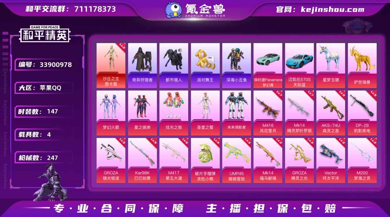 【ZHP1019】粉蓝螳螂-新101-都市-金鞋-粉蓝螳螂-1110扭蛋碎片-苹果手Q-1神装-5粉装-13特效枪-4载具-10粉色飞行器-80070热力值-3王牌印记-147套装-247枪皮 【红色神装等级】:沙丘之主-图卡盟(二级) 【红色角色神装】:沙丘之主-图卡盟 【热门品类】:粉装-梦幻火箭,套装-都市猎人,套装-派对舞王,套装-深海小丑鱼,套装-小丑鱼,套装-奇异狩猎者,角色-军刀雅典娜,套装-AG战队服,套装-龟仙人,套装-暗影哥特,套装-红红火火,角色-8号机,角色-Mark.06 【粉色套装】:粉装-梦幻火箭,粉装-星之彼岸,粉装-炫光之旅,角色-圣堂之誓,粉装-未来领航者 【粉色枪皮等级】:M416-风花雪月(七级),GROZA-精灵之光(三级),GROZA-镜光银凌(五级),UMP45-萌骑冒险(三级),Vector-环太平洋(三级),AKS-74U-森灵之息(五级),Kar98K-巳巳如意(五级),Mk14-精灵梦叶罗丽(七级),Mk14-福马献瑞(三级),M417-第五大道(五级),M200-梦海之灵(三级),DP-28-豹影疾电(五级),破片手榴弹-贪吃小熊(四级) 【粉色载具】:迈凯伦570S(天际蓝),保时捷Panamera(梦幻青),星梦玉骢,护世瑞兽 【粉色枪皮】:M416-风花雪月,GROZA-精灵之光,GROZA-镜光银凌,UMP45-萌骑冒险,Vector-环太平洋,...