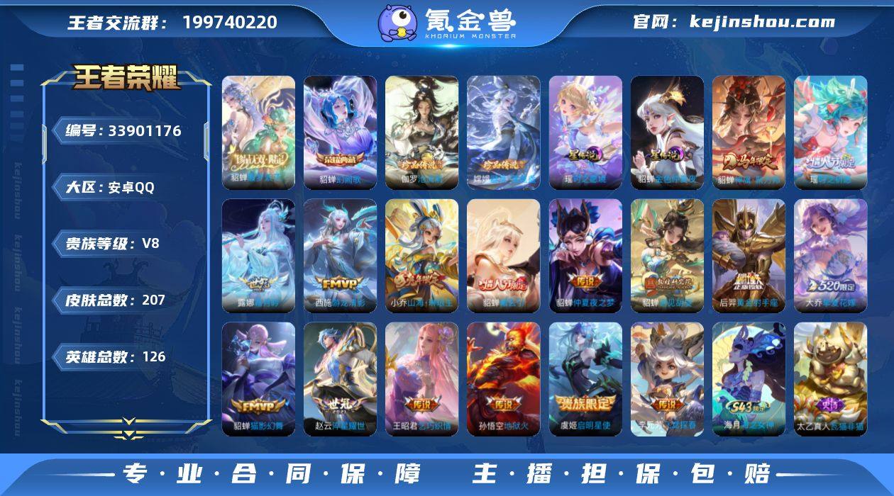 【精品女号·全皮貂蝉·珍品无双馥梦繁花带按键·沧流箭·器灵落星盏·紫瑶·瑶时之祈愿·山海琳琅生·挚爱花嫁·霜月吟·无二次包过】YXw26519-安卓Q-126英雄-207皮肤-6王者印记-165铭文-贵族积分9w【贵族8】【1典藏·1珍品无双·2珍品·2星传说·16传说·24按键】【因赛季更新游戏段付以上号为准!】 【英雄全皮】:貂蝉全皮,孙权全皮,空空儿全皮 【荣耀典藏】:貂蝉幻阙歌 【珍品无双】:貂蝉馥梦繁花 【珍品传说】:伽罗沧流箭,嫦娥器灵落星盏 【星元皮肤】:瑶时之愿境,貂蝉金色仲夏夜 【传说皮肤】:貂蝉神骥聚万邦,貂蝉曦玄引,露娜霜月吟,小乔山海琳琅生,大乔挚爱花嫁,瑶时之祈愿,貂蝉遇见胡旋,赵云淬星耀世,王昭君乞巧织情,西施游龙清影,李元芳飞鸢探春,虞姬启明星使,貂蝉猫影幻舞,后羿黄金射手座,貂蝉仲夏夜之梦,孙悟空地狱火 【限定皮肤】:蔡文姬夏日便利店,姜子牙天穹之誓,狄仁杰阴阳师,小乔山海琳琅生,赵云皇家上将,墨子神迹守卫,孙尚香蔷薇恋人,庄周高山流水,狄仁杰魔术师,达摩沙漠行僧,项羽海滩派对,貂蝉逐梦之音,貂蝉遇见胡旋,兰陵王金庭之子,后羿圣弓游侠,李元芳云中旅人,虞姬启明星使,干将莫邪真爱魔法,鬼谷子五谷丰年,大乔挚爱花嫁...