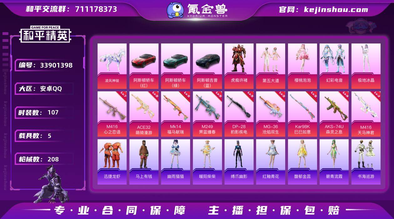 【LHPX2126】【特价出售/店主推荐】安卓 手Q-5粉装-9特效枪-5载具-5粉色飞行器-64191热力值-7王牌印记-107套装-208枪皮【热门品类】:套装-粉红小猪【粉色套装】:粉装-第五大道,角色-樱桃泡泡,粉装-幻彩电音,角色-虎痴许褚,角色-极地冰晶【粉色枪皮等级】:M416-心之恋语(七级),M416-天马神君(三级),ACE32-萌骑漫游(五级),AKS-74U-森灵之息(四级),Kar98K-巳巳如意(五级),Mk14-福马献瑞(五级),M249-霁蓝缠春(五级),DP-28-豹影疾电(五级),MG-36-沧焰双生(五级)【粉色载具】:阿斯顿马丁DBS(红),阿斯顿马丁DBS(绿),阿斯顿马丁DBX(蓝),空客H135-蔚蓝之翼,凌风神骏【粉色枪皮】:M416-心之恋语,M416-天马神君,ACE32-萌骑漫游,AKS-74U-森灵之息,Kar98K-巳巳如意,Mk14-福马献瑞,M249-霁蓝缠春,DP-28-豹影疾电,MG-36-沧焰双生【粉色飞行器】:香车宝马飞行器,炫彩糖果飞行器,沙丘之主天马,极意拳锋飞行器,踏卷乘风飞行器