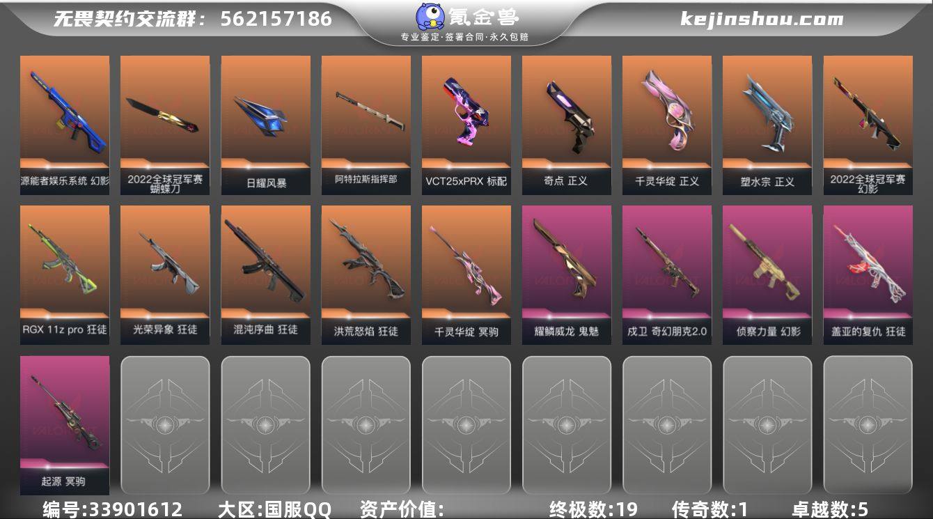 【编号60468 可秒换绑】【店长推荐!极品稀有皮肤号!2022全球冠军套 夜刃诡镰 定海神珍 光荣异象 狂徒 鬼丸国纲!!!】 【套装】:2022全球冠军赛套装 【英雄】:幻棱,炼狱,维斯,暮蝶,壹决,铁臂,捷风,幽影,不死鸟,贤者,猎枭,蝰蛇,零,芮娜,奇乐,尚勃勒,霓虹,夜露,K/O,黑梦,钢锁 【近战武器】:近战武器-2022全球冠军赛 蝴蝶刀,近战武器-蒙太奇 战斧,近战武器-碎心裂刃,近战武器-影钩,近战武器-鬼丸国纲,近战武器-定海神珍,近战武器-夜刃诡镰,近战武器-日耀风暴 遗器,近战武器-阿特拉斯指挥部 甩棍 【狂徒】:狂徒-洪荒怒焰,狂徒-混沌序曲,狂徒-RGX 11z Pro,狂徒-光荣异象,狂徒-盖亚的复仇 【幻影】:幻影-2022全球冠军赛,幻影-源能者娱乐系统,幻影-侦察力量,幻影-蒙太奇 【戍卫】:戍卫-奇幻朋克//2.0 【冥驹】:冥驹-千灵华绽,冥驹-起源 【战神】:战神-蒙太奇 【骇灵】:骇灵-蒙太奇 【VCT手枪】:标配-VCT25 x PRX 【正义】:正义-奇点,正义-千灵华绽,正义-塑水宗 【鬼魅】:鬼魅-耀鳞威龙 【狂怒】:狂怒-蒙太奇 【卡面】:南瓜盛典 卡面,红鳞松叶 卡面,Clutch 卡面,源能反应 卡面,无畏契约GO!第一卷:芮娜 卡面,无畏...