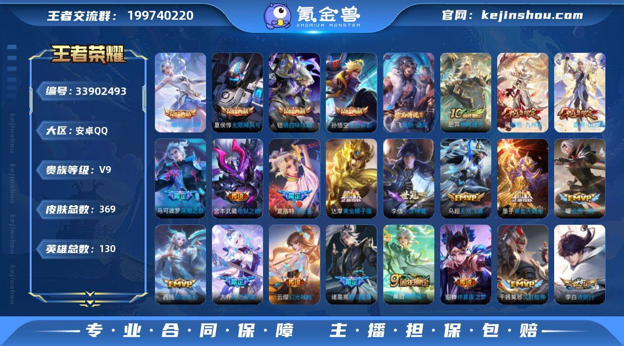 【王者荣耀】珍品无双0 典藏5 无双1 珍品传说2 传说43 史诗111 英雄130 皮肤369 贵族8级 荣耀典藏:无限飓风号|全息碎影|武则天|银白咏叹调|最初的交响__无双皮肤:群星魔术团__珍品传说:孙策-时之奇旅|兔狲·蓬尾__传说皮肤:鸣野蒿|深海之息|无双飞将|花朝如约|启明星使|地狱之眼|地狱火|海洋之心|仲夏夜之梦|云霓雀翎|久胜战神|黄金狮子座|狄仁杰-超时空战士|黄金射手座|黄金白羊座|刘备-时之恋人|一念神魔|云鹰飞将|冠军飞将|飞鸢探春|游龙清影|淬星耀世|浮生妄|鹤羽星尊|孙尚香-末日机甲|大乔-时之奇旅|黄金天蝎座|兰陵王-默契交锋|怒海麟威|诗剑行|碎云|星穹之声|亚瑟-追逃游戏|战鼓燎原|朵莉亚-心动手记|云中君-群星魔术团|灼幽烈阳|牧神诗旅|玄雷天君|幻光神枪|愿照·山河定|愿照·九州拓|神树通天__稀有限定:朱雀志|烈魂|李小龙|梁祝|狮舞东方|拒霜思|百解令|大漠名商|地狱燃心|电玩高手|古海寻踪|海滩派对|海盐诗旅|航海奇遇记|胡桃异想国|幻夜卜梦|皇家上将|混沌棋|火炮绅士|剑破天穹|江河有灵|金庭之子|决胜骁骑|梦圆繁星|迷踪丽影|魔术师|女武神|奇幻香踪|千军破阵|擒涛扼浪|青焰无极|穷奇|驱傩正仪|燃音魔法|荣光圣徽|沙漠行僧|朔风刀|探海日志|醍醐杖|天穹祈灯|妄想...