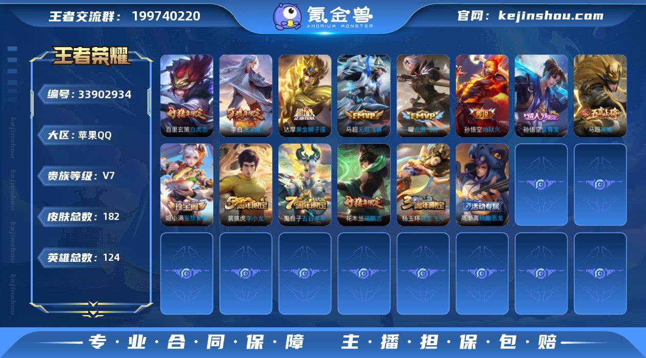 苹果Q 可二次 6传说124英雄182皮肤 凤求凰 白虎志 无双飞将 地狱火 云鹰飞将 黄金狮子座 神威 至尊宝 白虎志 瑞麟志 猎兽之王 原初追逐者 黎明之约 狂想玩偶喵 暗夜猫娘 无限星赏官 原初探秘者 李小龙 水晶猎龙者 猫狗日记男 金属风暴 地狱岩魂 特工战影 玩趣恶龙 舞动绿茵 妄想食味 心灵战警 修罗 魅语 千年之狐 紫霞仙子 圣诞恋歌 幽灵船长 乘风破浪 末日机甲男 永昼 节奏热浪 绅士熊喵 街头霸王 鬼剑武藏 德古拉伯爵 单词大作战 狮心王 蜃楼王 妖精王 炼金王 凯尔特女王 狰 饕餮 烛龙 重明 穷奇 御狮 御霄 御旌 御銮 朔风刀 混沌棋 疑决卦 醍醐杖 万华元夜 演武夺筹 驱傩正仪 千军破阵 拳王 沙漠行僧 金庭之子 霸王丸 大漠名商 云中旅人 丁香结 海盐诗旅 科学大爆炸 皇家上将 擒涛扼浪 魅力维加斯 探海日志 水果甜心 古海寻踪 天穹祈灯 无心 纤云弄巧 五谷丰年 遇见飞天 鹰眼统帅 魔术师 顽趣梦奇 王者荣耀账号