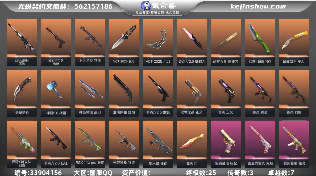【qyz10009】玩够可回血离火爆爆25爪26篆刀超时空鬼魅盖亚狂徒黑波塑水狂徒侦察幻影 qyz10009 【近战武器】:近战武器-VCT 2026 篆刀,近战武器-穿花蝴蝶,近战武器-侦察力量 蝴蝶刀,近战武器-奇点//2.0 蝴蝶刀,近战武器-VCT 2025 爪刀,近战武器-离火刃,近战武器-黑波之刃,近战武器-未来开拓者,近战武器-超限闪存 匕首,近战武器-合金战车 军刀,近战武器-金琅斧,近战武器-诡秘蛇影 军刀,近战武器-神罚//2.0 战锤,近战武器-神圣领域 战刀 【狂徒】:狂徒-奇点//2.0,狂徒-塑水宗,狂徒-RGX 11z Pro,狂徒-光荣异象,狂徒-上古龙炎,狂徒-盖亚的复仇,狂徒-紫阙金琅,狂徒-诡秘蛇影 【幻影】:幻影-砰砰X特攻队,幻影-奇点,幻影-侦察力量,幻影-超限闪存,幻影-合金战车,幻影-神圣领域,幻影-末日之翼 【戍卫】:戍卫-紫阙金琅,戍卫-浮光跃金,戍卫-花漾粉红,戍卫-月球哨兵,戍卫-折光棱晶 【獠犬】:獠犬-神圣领域,獠犬-模拟赫兹,獠犬-数码咒术 【冥驹】:冥驹-ORA x 颗秒,冥驹-花漾粉红,冥驹-模拟赫兹,冥驹-星云暗涌 【飞将】:飞将-合金战车,飞将-末日之翼 【莽侠】:莽侠-超限闪存,莽侠-诡秘蛇影,莽侠-月球哨兵 【战神】:战神-神圣领域,战神-浮光...