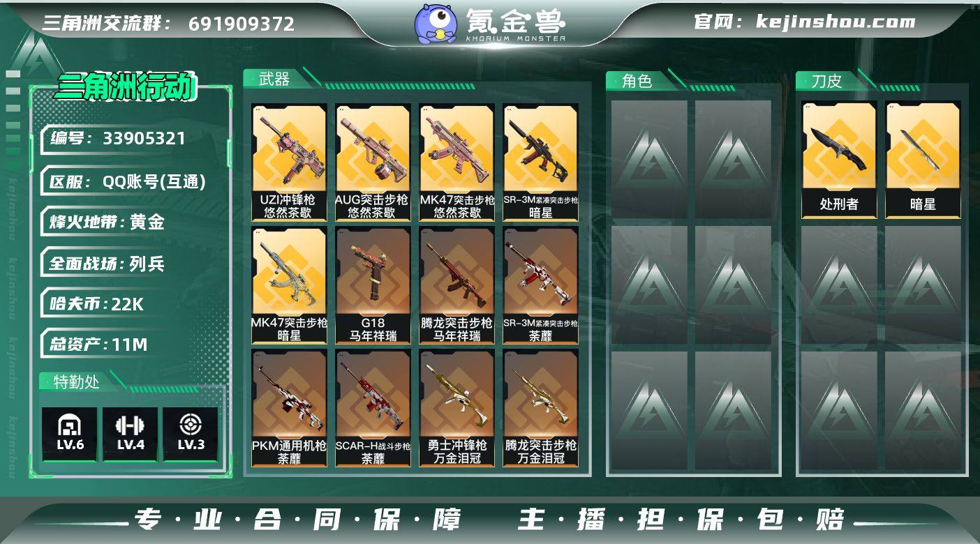 【sjs9650】包人脸 玩够能回血 带暗星和12发aw sjs9650 11m总资产-22k哈夫币-60烽火等级-黄金-10战场等级-列兵 【近战皮肤】:近战-暗星,近战-处刑者1级,近战-黑鹰 【传说外观】:AKM突击步枪-锦绣,K416突击步枪-行动记录,AUG突击步枪-悠然茶歇,SCAR-H战斗步枪-荼蘼,腾龙突击步枪-马年祥瑞,腾龙突击步枪-万金泪冠,K437突击步枪-锦绣,MK47突击步枪-悠然茶歇,MK47突击步枪-暗星,UZI冲锋枪-悠然茶歇,SMG-45冲锋枪-锦绣,SR-3M紧凑突击步枪-暗星,SR-3M紧凑突击步枪-荼蘼,勇士冲锋枪-万金泪冠,PKM通用机枪-荼蘼,AWM狙击步枪-万金泪冠,G18-马年祥瑞 【史诗外观】:K416突击步枪-阿萨拉特攻,SG552突击步枪-哈夫克警备,SMG-45冲锋枪-阿萨拉特攻,MP7冲锋枪-六套之力,QJB201轻机枪-炽焰, M14射手步枪-航天庆典 【稀有外观】:K416突击步枪-一帆风顺,SG552突击步枪-贴花艺术, AK-12突击步枪-马年新春,SMG-45冲锋枪-行动开启,勇士冲锋枪-冰天雪地,M249轻机枪-冰天雪地,QJB201轻机枪-哈夫克卫队,QSZ92G-一帆风顺,G18-星链科技,G18-哈夫克航天 【普通外观】:M4A1突击步枪-高雅黑,M4A1突击步枪-海色,QBZ95-1突击步枪-高雅黑,K416突击步枪-几何迷彩,M7战...