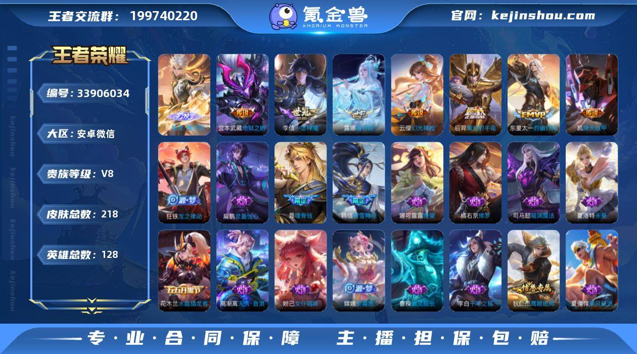 V8 1无双 15传说 128英雄 218皮肤 可二次 可修改实名 男号 【英雄全皮】敖隐全皮,孙权全皮,蚩奼全皮,大禹全皮 【稀有英雄】敖隐(小龙人),大司命,韩信(韩跳跳),夏洛特(夏师傅),艾琳,橘右京(橘子),娜可露露(鸟人),不知火舞,赵云,金蝉(唐僧),戈娅 【无双皮】器灵·螭龙剑 【传说皮】神骥·逐星野,幻光神枪,神树通天,黄金射手座,地狱之眼,一念神魔,时之恋人-刘备(电焊工),绛天战甲(鸡嘴战神),超时空战士-狄仁杰,灼幽烈阳,霜月吟,澜逐花归海 【珍宝阁皮】妄想食味,蔷薇恋人 【赛季/战令皮】噬灭天穹(s37),古海寻踪(s33),海盐诗旅(s30),擒涛扼浪(s31),探海日志(s32),驭风魔法,玲珑珍味,流音漫舞,地狱燃心,剑破天穹(s35),天穹祈灯(s34),暖冬·兔眠,金庭之子(s27),大漠名商(s28),云中旅人(s29) 【史诗皮】百晓客,星界战将,埋骨钱,灵蛊蚀心,巫礼祀神,龙之律动,线条小狗-周瑜,海之女神,九幽镇关,特工魅影,千年之狐,永昼,江河有灵,蒙恬荣光圣徽,真我赫兹(镜),偶像歌手,晚萤,百相守梦(关羽),百相守梦(刘备),末日机甲-吕布,猫狗日记-孙策,乱世虎臣,节奏热浪,修罗,女仆咖啡,摇滚巨星,水果甜心,绅士熊喵,天才门将,星夜王子,功夫厨神,德古拉伯爵,暗隐猎兽者,幽灵船长,鬼剑武藏,暗渊魔法,心灵战警...