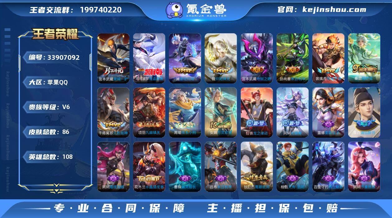 【XY1587】贵族等级6/传说皮肤数量7/史诗皮肤数量27/皮肤数量86/英雄数量108/段位至尊星耀/金标宫本武藏/金标阿轲/孙权全皮/黑崎一护/怪盗基德/祥瑞亨通/鸣野蒿/澜逐花归海/炽阳神光/久胜战神/末日机甲-孙尚香/地狱之眼/谪仙醉月/阴阳师/皇家上将/魔术师/海滩派对/原初追遂者/剑破天穹(s35)/噬灭天穹(s37)/谧流熔炉/虚灵犬护/荣光之誓/九幽镇关/线条小狗-周瑜/海月海之女神/万灵启世/罗小黑战记/龙之律动/化蝶舞/玫瑰异探/天秀·启明/鹰眼统帅/节奏热浪/功夫厨神/舞动绿茵/特工魅影/冰冠公主/暗隐猎兽者/水晶猎龙者/末日机甲-吕布/幽灵船长/魅力维加斯/暗夜贵公子/水果甜心/鬼剑武藏/暗夜猫娘/紫霞仙子/影百相守梦/逐霄之志/鹤鸣心笺/径山谋武/踏浪烽翎/锦麟游梦/死霸装/星梦巡礼/雪境奇遇-西施/铁骨偃魂/苍林狼骑/逐霄战戟/雾都夜雨/怪诞之夜/乓乓大师/次元突破/坚韧之力/掌控之力/沉稳之力/龙腾万里/兔女郎/拳王/死亡骑士/时尚教父/玩偶对对碰/救世之瞳/东方不败/忍·炎影/爱心护理/哥特玫瑰/街头霸王/碧珀绯影/孤猎/冰刃幻境/幸存者/踏雪寻梅/花间舞/尼罗河女神/龙域领主/维京掠夺者/激情绿茵