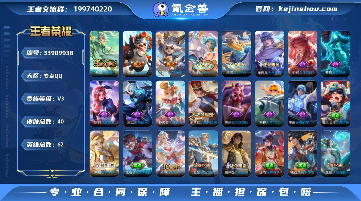 可二次【3传说可秒换绑】安卓QQ-62英雄-40皮肤【传说皮肤】鸣野蒿 胖达荣荣 飞鸢探春【史诗皮肤】线条小狗 春霖将至 光弋星穹 幽灵船长 女仆咖啡 魅力维加斯 天才门将 胡桃异想国 水果甜心 未来纪元 天秀·幻梦 节奏热浪【勇者皮肤】鹤鸣心笺 谜偶窥秘 线条小狗 线条小狗 班班快跑 锦麟游梦 逆浪荇歌 踏浪烽翎 荣光之誓 往忆晖光 万象初新 阿尔法小队 万事如意 天使之翼 死亡骑士 五福同心 花好人间 幻泉雾影 救世之瞳 黄金武士 营地ID:1513720057
