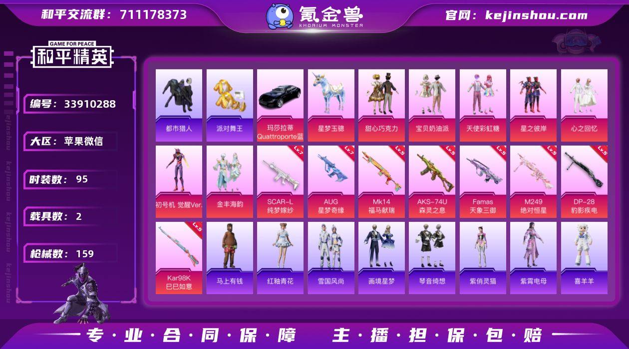 【精氪号!都市 金鞋 巧克力 7级AUG星梦 满地铁天赋】YXc27874-【可二次】【因赛季更新游戏段付以上号为准!】 苹果V-4稀有2载具7粉装7特效枪8热门95套装159枪皮 5w热力值 6印记 历史超级王牌15星 【4稀有】 AKM-缤纷海域 都市猎人 派对舞王 派对舞王(金靴子) 【2载具】 玛莎拉蒂Q蓝色 星梦玉骢 【7粉装】 觉醒初号机 宝贝奶油派 天使彩虹糖 甜心巧克力 金丰海韵 心之回忆 星之彼岸 【7特效枪】 SCAR-L-纯梦嫁纱 (7级) AKS-74U-森灵之息 (5级) Kar98K-巳巳如意 (5级) DP-28-豹影疾电 (5级) AUG-星梦奇缘 (7级) M249-绝对恒星 (5级) Mk14-福马献瑞 (5级) 【8热门】 8号机 Mark.06 小丑鱼 龟仙人 鹰眼刺客 迅捷狂鲨 漫步者 弄潮海豚 【2头盔】 甜心宝贝头盔 深海小丑鱼头盔 【3背包】 梦幻火箭背包 甜心宝贝背包 深海小丑鱼背包