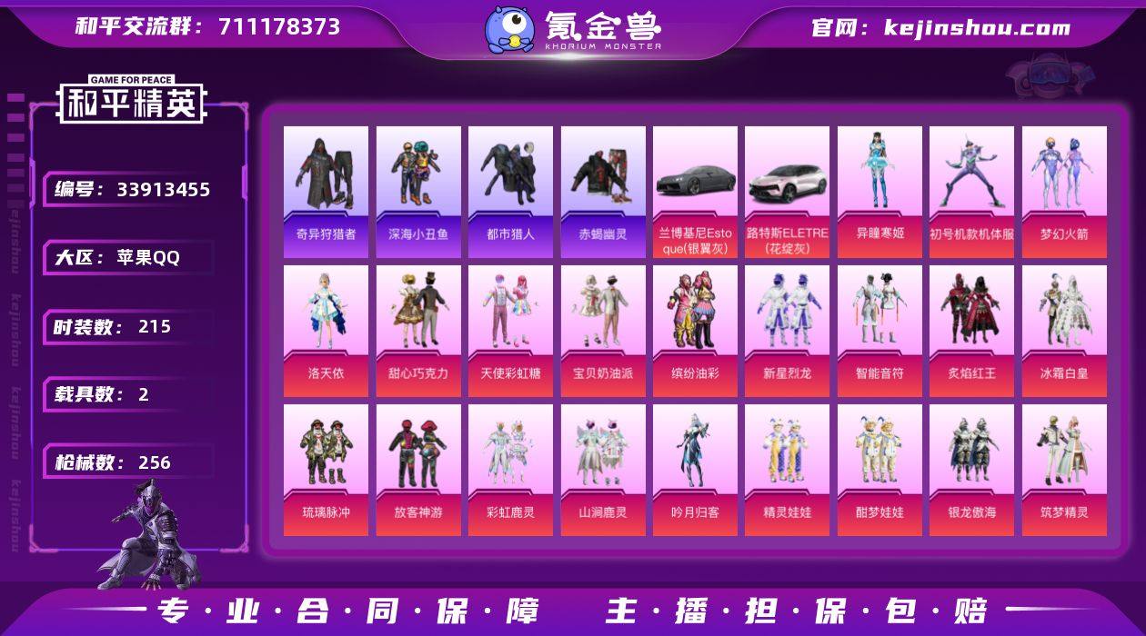 DYH18195【小雾神同款身法素材号 梦幻火箭 猪脸 巧克力三姐妹 赤蝎幽灵 红眼罩 都市猎人 浪漫天命 深海小丑鱼 2载具-27粉装-17特效枪】苹果手Q-2载具-27粉装-17特效枪-215套装-256枪皮-16王牌印记-荣耀皇冠Ⅰ-94522热力值 【2载具】路特斯ELETRE(花绽灰),兰博基尼Estoque(银翼灰) 【27粉装】角色-虎痴许褚,智能音符,缤纷油彩,角色-异瞳寒姬,角色-洛天依,酣梦娃娃,甜心巧克力,冰霜白皇,角色-初号机款机体服,新星烈龙,宝贝奶油派,炙焰红王,彩虹甜喵,筑梦精灵,精灵娃娃,角色-复仇流浪者,吟月归客,放客神游,傲雪凌霜,音爆索尼克,银龙傲海,琉璃脉冲,山涧鹿灵,梦幻火箭,彩虹鹿灵,天使彩虹糖,赤焰黑爵 【17特效枪】M249-彩虹甜喵[3级],M416-心之恋语[2级],Mk14-福马献瑞[4级],UMP45-相思残雪[5级],SLR-暗夜玫瑰[3级],SCAR-L-青春物语[1级],M16A4-垂柳戏鸭[2级],DP-28-暗夜鎏金[3级],DP-28-豹影疾电[5级],UZI-绮梦青鸾[4级],M762-甜蜜誓约[1级],Kar98K-巳巳如意[4级],SCAR-L-童趣迷兔[5级],AWM-橘柚倾心[4级],AKM-梦之光华[5级],GROZA-焦糖拿铁[5级],Vector-环太平洋[5级] 【14稀有】暗影哥特,奇异狩猎者,浪漫天命,TT战队服,激萌罗小黑,小丑鱼,忍者信条,深海小丑鱼,都市猎人,狂沙舞者,...