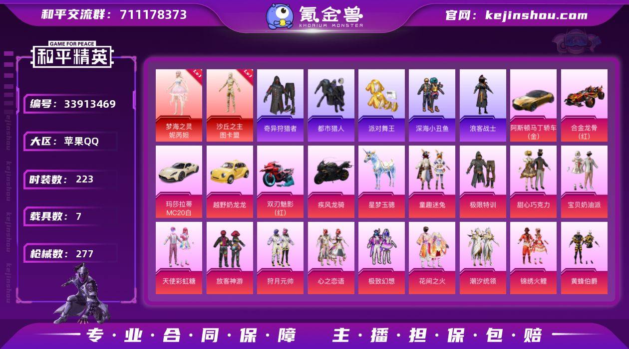 223套装/枪械16/装备423/载具7/战备214/王牌印记16/热力值125776/一级AKM-梦之光华/三级AKM-魔法神域/七级SCAR-L-梦幻火箭/六级M416-心之恋语/五级GROZA-镜光银凌/七级UMP45-相思残雪/四级Kar98K-伏魔团/一级Kar98K-巳巳如意/三级M24-镜域双华/五级AWM-花间之火/三级MK14-盛世惊鸿/四级SLR-暗夜玫瑰/二级M200-梦海之灵/五级DP-28-千金淑猫/一级DP-28-豹影疾电/一级梦海之灵-妮芮妲/一级沙丘之主-图卡盟/梦海之灵-妮芮妲/沙丘之主-图卡盟/童趣迷兔/都市猎人/派对舞王/深海小丑鱼/小丑鱼/奇异狩猎者/浪客战士/龟仙人/粉红小猪/糯粉咩咩/撬棍-龙胆亮银枪/极限特训/甜心巧克力/宝贝奶油派/天使彩虹糖/放客神游/狩月元帅/心之恋语/极致幻想/花间之火/潮汐统领/锦绣火鲤/黄蜂伯爵/草莓生巧/虎啸骄阳/炙焰赤龙/飓风飞鹰/桀骜红莲/焰龙焚天/暗夜玫瑰/山涧鹿灵/零号机款机体服/岚岚物语/冷魅冰骑/赤焰黑爵/紫电风暴/筑梦精灵/甜梦小狐/未来歌姬/巨渊蟹踪/小叽联名款/初号机 觉醒Ver./金丰海韵/千金淑猫/阿斯顿·马丁DBS(金)/玛莎拉蒂MC20(星石白)/合金龙骨(红)/越野奶龙龙/双人摩托-双刃魅影(红)/疾风龙骑/空客H135-蔚蓝之翼/星梦玉骢/AKM梦之光华/AKM魔法神域/SCAR-L梦幻火箭/M416心...