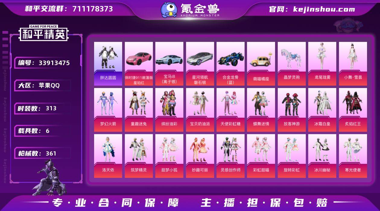 【LHPD941】极品公主号【新101/小舞/猪脸/小丑女/洛天依/不知火舞/第五大道】苹果手Q-31粉装-11特效枪-6载具-9粉色飞行器-138699热力值-18王牌印记-313套装-361枪皮 【热门品类】:粉装-梦幻火箭,粉装-童趣迷兔,粉装-缤纷油彩,角色-军刀雅典娜,套装-胖达圆圆,套装-龟仙人,套装-潮萌小黄鸭,套装-浪漫波比,套装-粉红小猪 【粉色套装】:粉装-宝贝奶油派,粉装-天使彩虹糖,粉装-蝶舞迷情,粉装-梦幻火箭,粉装-缤纷油彩,粉装-放客神游,粉装-冰霜白皇,粉装-童趣迷兔,粉装-炙焰红王,角色-洛天依,粉装-筑梦精灵,粉装-甜梦小狐,粉装-妙趣可丽,粉装-灵感创作师,粉装-彩虹甜喵,粉装-旋转彩虹,粉装-冰川幽秘,粉装-寒光使者,粉装-启明星,粉装-第五大道,粉装-心之回忆,角色-小可学妹,粉装-闲梦青缨,角色-白兰星,粉装-莲影清波,角色-美雪,角色-狂花道·不知火舞,角色-狂魅哈莉,角色-绯穹魔姬,人物-小舞·雪昙,角色-鸢尾珑雾 【粉色枪皮等级】:AKM-绿萝繁花(五级),SCAR-L-锦绣绵绵(五级),M416-电玩时刻(五级),GROZA-旋转彩虹(七级),AUG-超新星(七级),UMP45-量子极限(五级),Kar98K-巳巳如意(五级),M24-莲影清波(七级),Mk14-福马献瑞(五级),M249-...