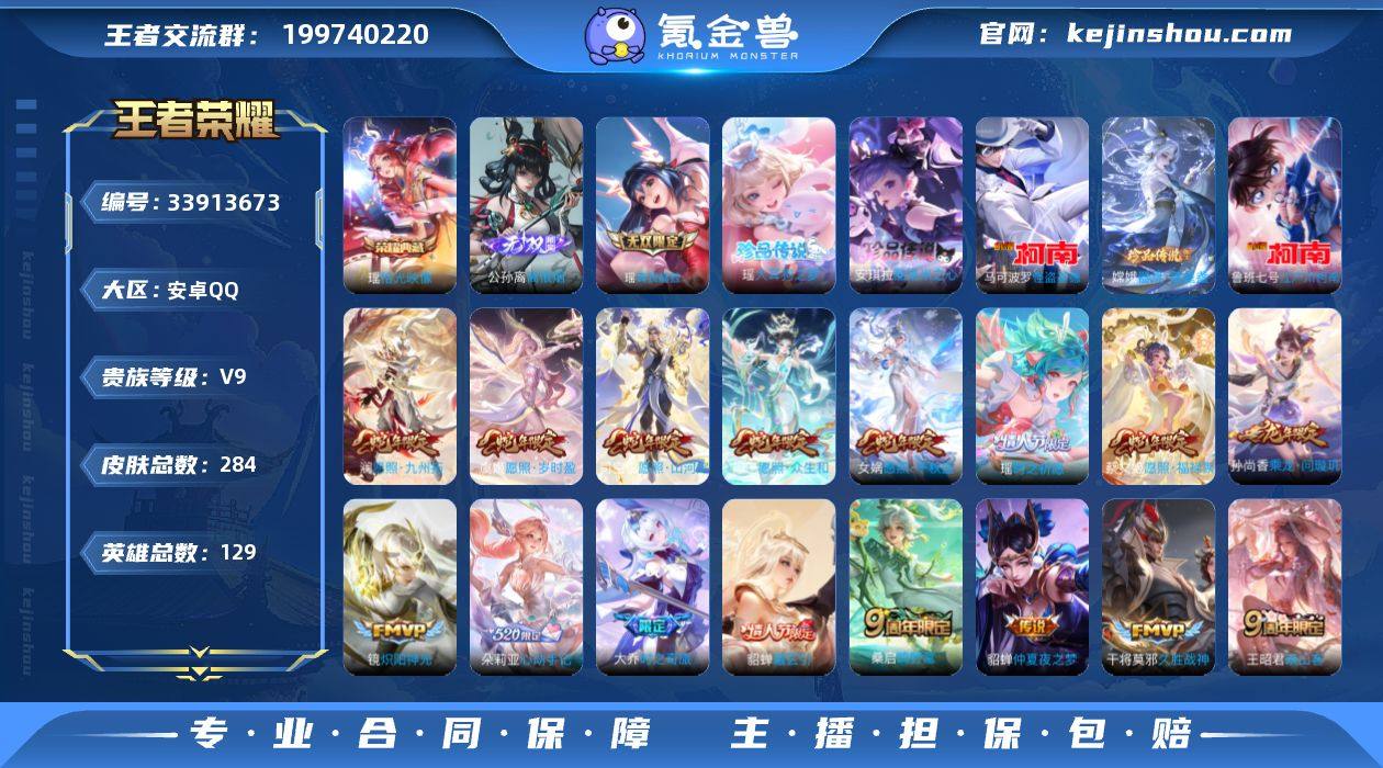 129英雄-284皮肤-安卓QQ/可二次-香香软软质量v9女号-瑶全皮-差7000多到v10-背包还有一个荣耀水晶/284皮肤/2典藏//2无双/5珍品传说/28传说/78史诗/9稀有英雄 【5 珍品传说】酷洛米之心 安琪拉,大耳狗之梦 瑶,怪盗基德 马可波罗,器灵·落星盏 嫦娥,江户川柯南 鲁班七号, 【2 典藏皮肤】颠倒童话·魔镜 安琪拉,拾光映像 瑶, 【2 无双皮肤】真我赫兹 瑶,离恨烟 公孙离, 【28 传说皮肤】胖达荣荣 梦奇,启明星使 虞姬,花朝如约 蔡文姬,时之祈愿 瑶,灼幽烈阳 东皇太一,仲夏夜之梦 貂蝉,神骥·赴朔漠 狄仁杰,神骥·鸣幻洲 朵莉亚,神骥·聚万邦 貂蝉,神骥·逐星野 马超,神骥·镇沧海 关羽,神骥·越千峰 云缨,炽阳神光 镜,乘龙·问璇玑 孙尚香,久胜战神 干将莫邪,时之奇旅 大乔,挚爱花嫁 大乔,心动手记 朵莉亚,愿照·九州拓 澜,愿照·众生和 妲己,愿照·福禄聚 蔡文姬,神树通天 后羿,愿照·山河定 司空震,愿照·岁时盈 虞姬,愿照·千秋盛 女娲,曦玄引 貂蝉,鸣野蒿 桑启,映山客 王昭君, 【78 史诗皮肤】龙鼓争鸣 蒙犽,时之奇旅 安琪拉,蔬乡物语 鲁班七号,紫霞仙子 露娜,时之奇旅 妲己,高山流水 庄周,妄想食味 姬小满,德古拉伯爵 刘邦,心灵战警 亚瑟,五谷丰年 鬼谷子,无心 元歌,巫礼祀神 少司缘,鬼剑武藏...