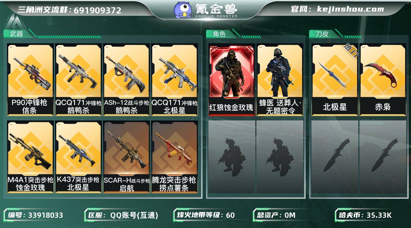 【SJZF6681】总资产277M/哈夫币3533万/传说近战数1/传说枪皮数42/战场等级30/行动等级60/安全箱等时效性道具以游戏内数据为准,详情请看图/红狼-蚀金玫瑰/蛊-能天使午夜邮差/蜂医-送葬人·无题密令(S5)/深蓝-不破誓约/红狼-电锯惊魂/露娜-金牌射手/乌鲁鲁-荒原猎手/蛊-不羁人生/近战武器-北极星/近战-信条/近战-赤枭/近战-处刑者4级/黑鹰/M4A1突击步枪-蚀金玫瑰/M4A1突击步枪-阿米娅/AKM突击步枪-锦绣/ASh-12战斗步枪-鹅鸭杀/K416突击步枪-行动记录/AUG突击步枪-悠然茶歇/SG552突击步枪-运动员/AK-12突击步枪-特斯拉线圈/SCAR-H战斗步枪-启航/SCAR-H战斗步枪-荼蘼/CAR-15突击步枪-阿米娅/腾龙突击步枪-捞点薯条/腾龙突击步枪-马年祥瑞/K437突击步枪-北极星/K437突击步枪-锦绣/KC17突击步枪-电锯惊魂/47突击步枪-悠然茶歇/P90冲锋枪-信条/Vector冲锋枪-能天使-午夜邮差/Vector冲锋枪-夜莺/UZI冲锋枪-特斯拉线圈/UZI冲锋枪-悠然茶歇/SMG-45冲锋枪-锦绣/SR-3M紧凑突击步枪-特斯拉线圈/SR-3M紧凑突击步枪-荼蘼/勇士冲锋枪-能天使-午夜邮差/QCQ171冲锋枪-北极星/QCQ171冲锋枪-鹅鸭杀/QCQ171冲锋枪-不羁人生/4冲锋枪-夜莺/725双管霰弹枪-送葬人-无题密令/PKM通用机枪-荼蘼/M250通用机...