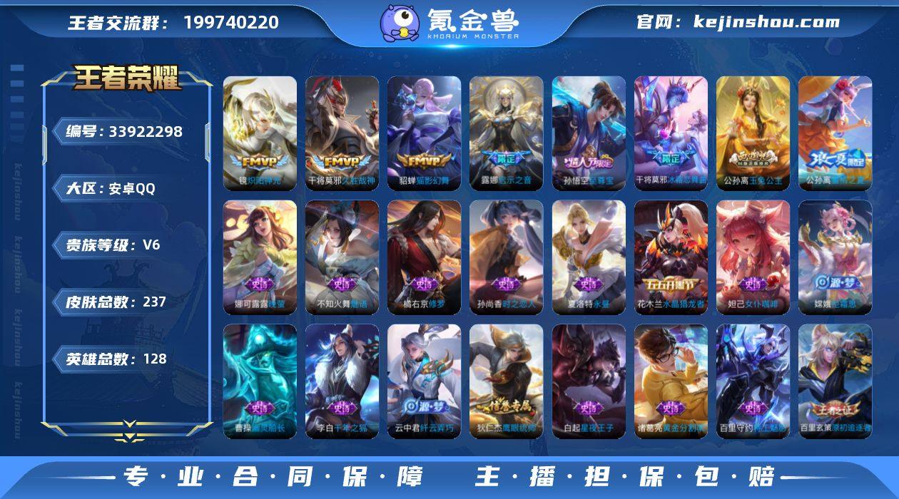 英雄 237皮肤 可二次 可修改实名 男号 【英雄全皮】敖隐全皮,孙权全皮,蚩奼全皮,大禹全皮 【稀有英雄】敖隐(小龙人),大司命,韩信(韩跳跳),夏洛特(夏师傅),艾琳,橘右京(橘子),娜可露露(鸟人),不知火舞,赵云,金蝉(唐僧),戈娅 【传说皮】神树通天,末日机甲-孙尚香(绿蚂蚱),久胜战神,猫影幻舞,炽阳神光 【珍宝阁皮】妄想食味,胡桃夹子,万物之道,女武神 【赛季/战令皮】噬灭天穹(s37),古海寻踪(s33),海盐诗旅(s30),擒涛扼浪(s31),探海日志(s32),顽趣-梦奇,天穹祈灯(s34),天穹之誓(s36),御銮(s16),朔风刀(s17),混沌棋(s18),疑决卦(s19),醍醐杖(s20),原初探秘者(s21),万华元夜(s22),演武夺筹(s23),驱傩正仪(s24),千军破阵(s25),西部大镖客-猪八戒,暗影游猎(游乐娃子),云间偶戏,火炮绅士,沙漠行僧(s26),幻夜卜梦,金庭之子(s27),大漠名商(s28),云中旅人(s29) 【史诗皮】线条小狗-周瑜,九幽镇关,万灵启世,涂山容容,百相守梦-黄忠,紫霞仙子,黄金分割率,特工魅影,千年之狐,永昼,江河有灵,蒙恬荣光圣徽,魅语,冰冠公主,晚萤,猫狗日记-孙策,时之恋人-孙尚香,乱世虎臣,修罗,女仆咖啡,水果甜心,天才门将,星夜王子,时之奇旅-安琪拉,功夫厨神,德古拉伯爵,暗隐猎兽者,幽灵船长,鬼剑武藏,舞动绿茵,...